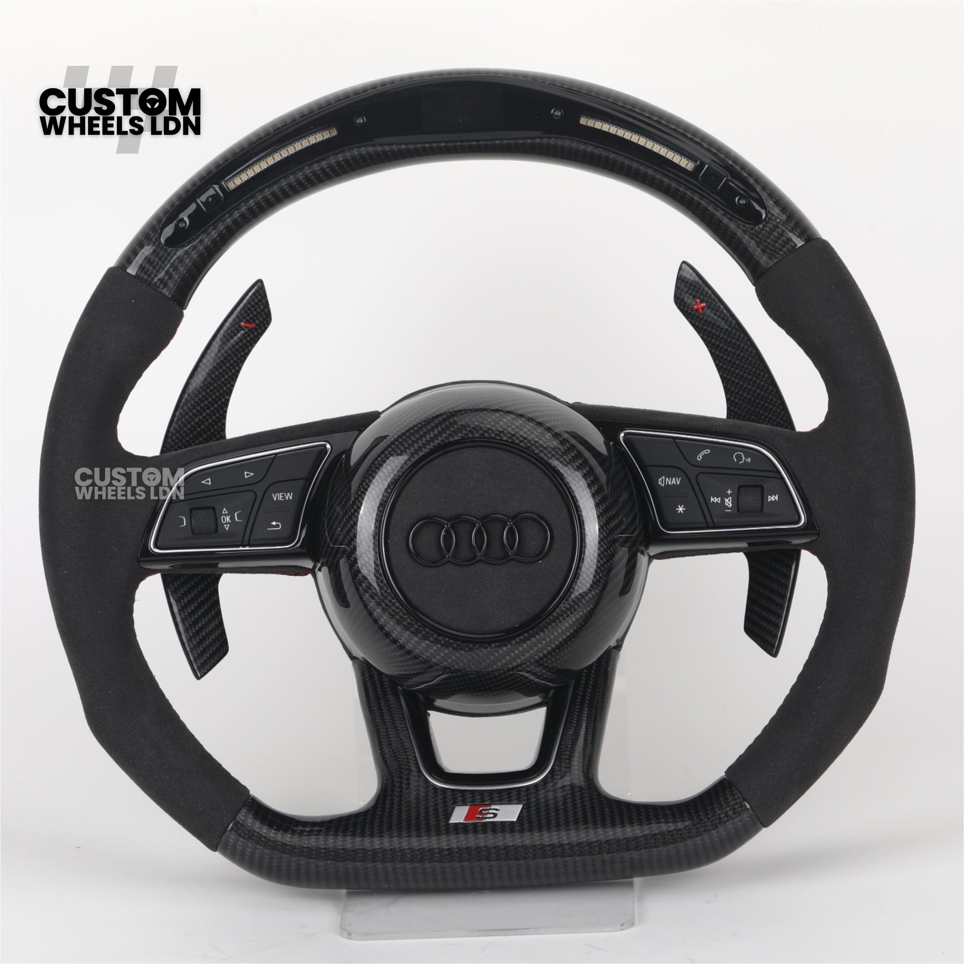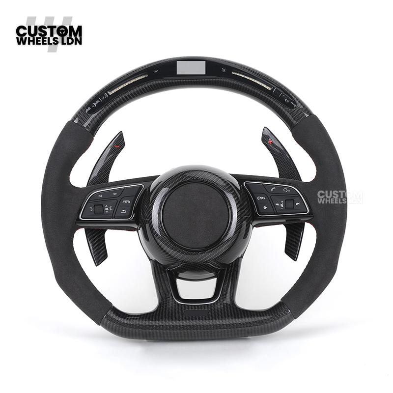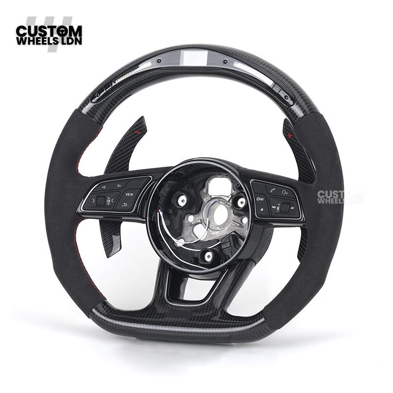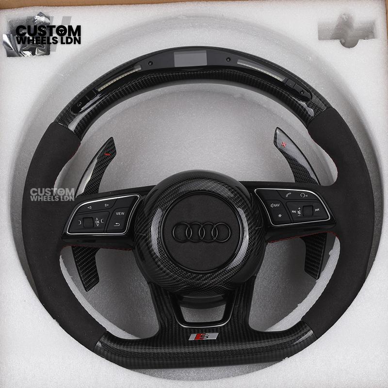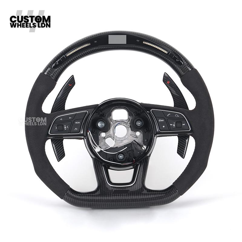 Audi Custom B9 Flat Bottom Steering Wheel – LED Rev Display, Alcantara Grip, Carbon Top & Bottom, Carbon Paddles | Fits A3, S3, RS3, A4, S4, A5, S5, Q5, SQ5, A6, A7 + more | Plug & Play | With Airbag | Upgrade for Older Models Available
