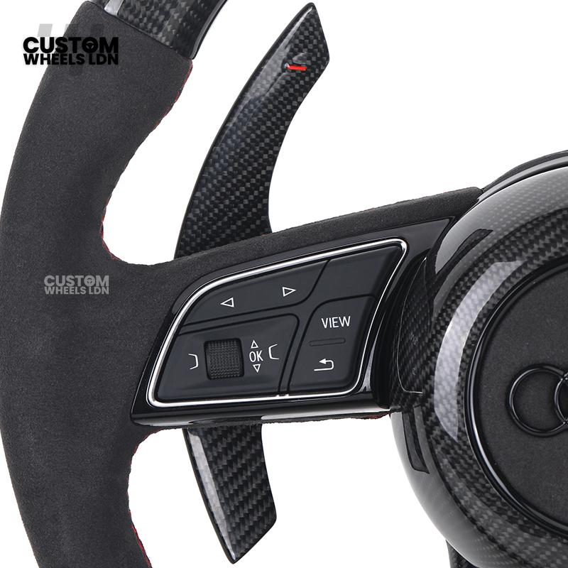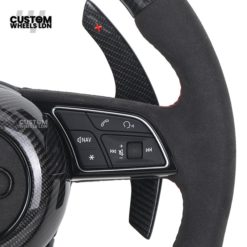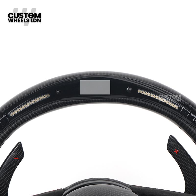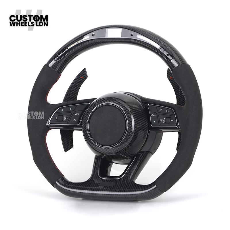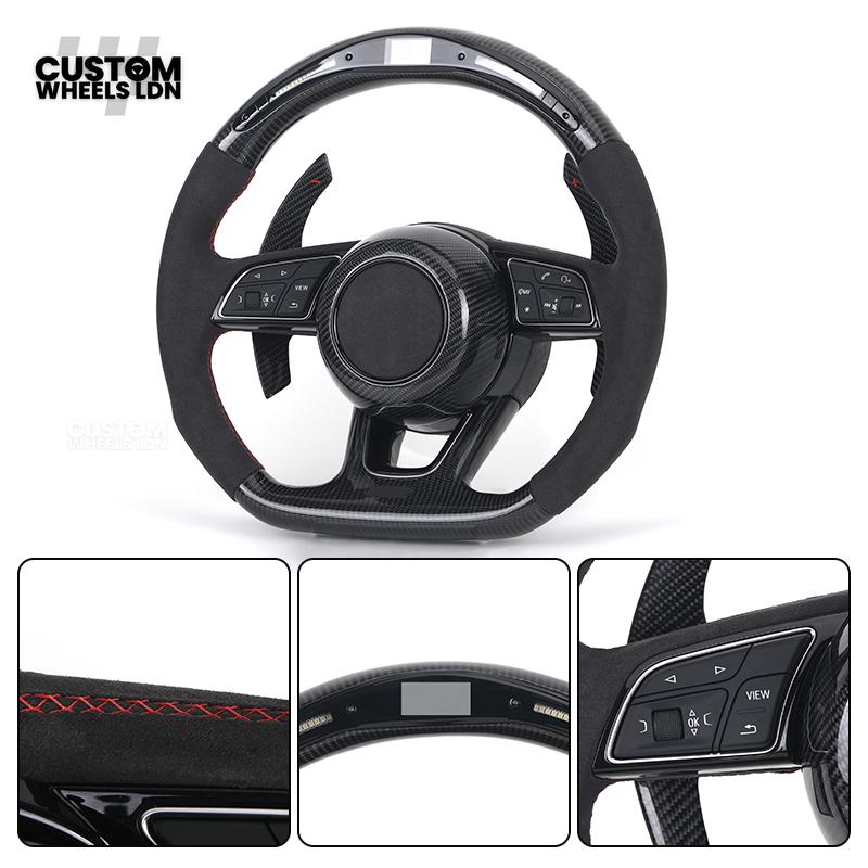 Audi Custom B9 Flat Bottom Steering Wheel – LED Rev Display, Alcantara Grip, Carbon Top & Bottom, Carbon Paddles | Fits A3, S3, RS3, A4, S4, A5, S5, Q5, SQ5, A6, A7 + more | Plug & Play | With Airbag | Upgrade for Older Models Available
