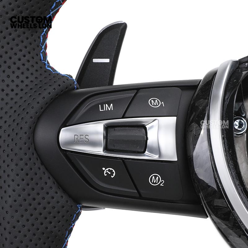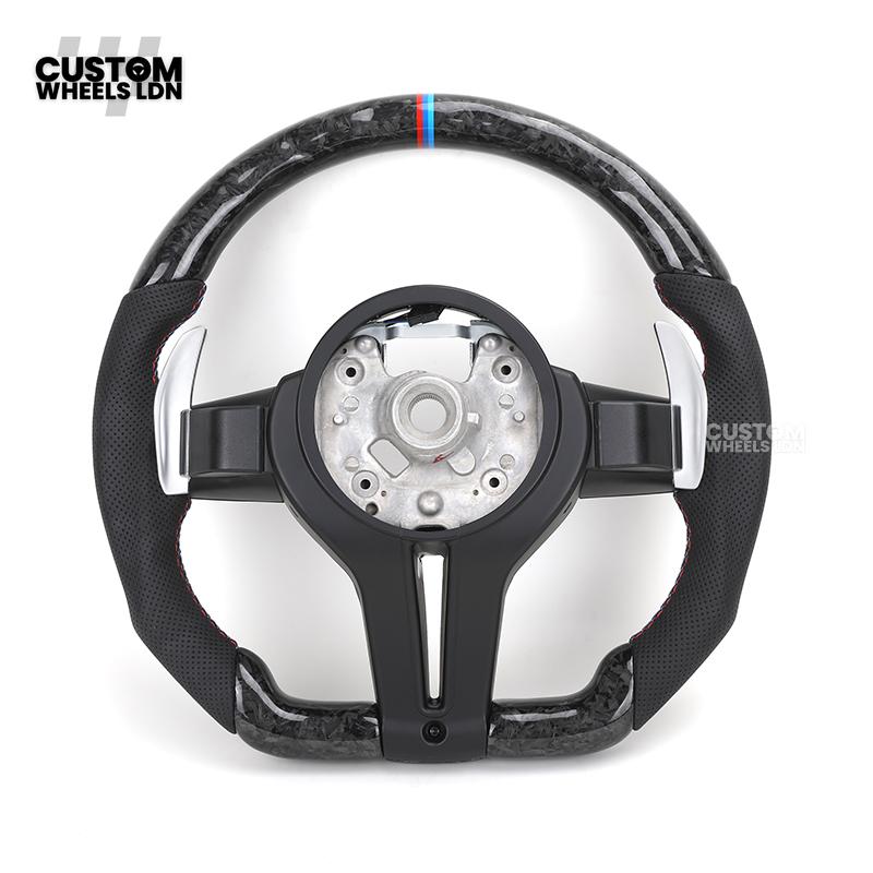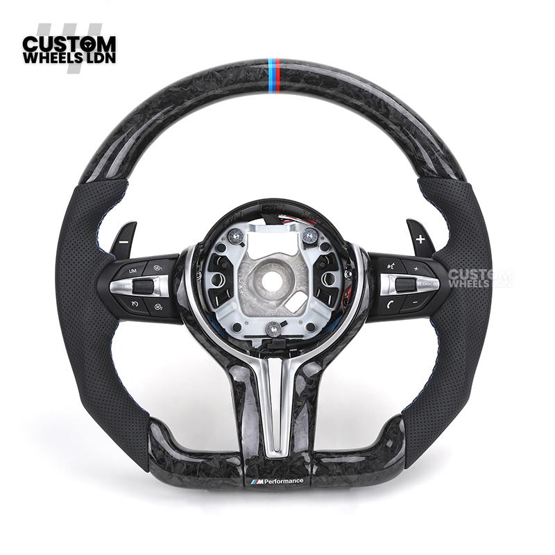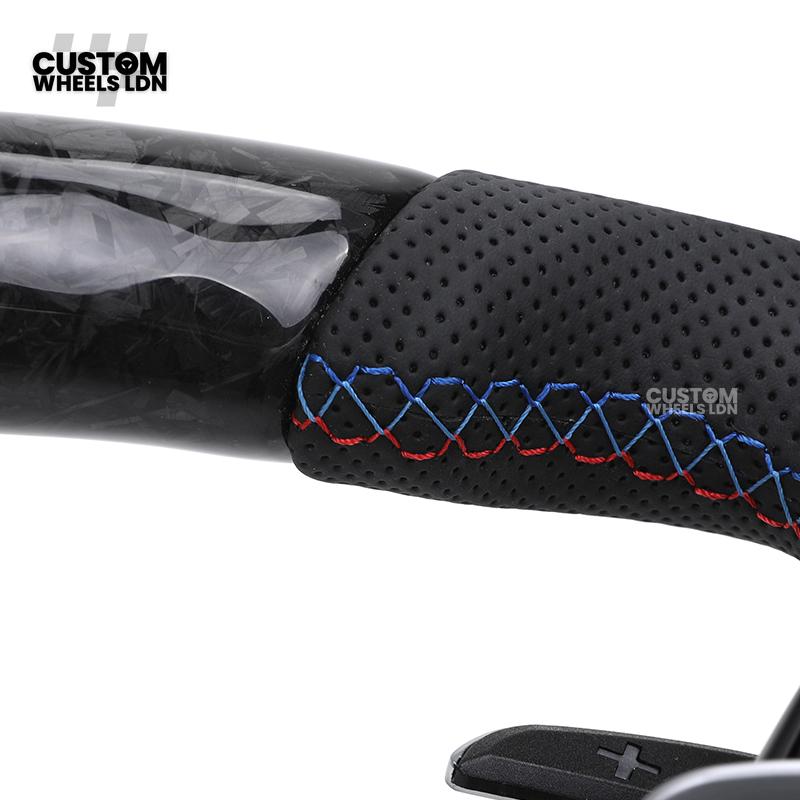 BMW Custom Forged Carbon M Performance Steering Wheel | Blue M Stitching | Thin Paddles | Plug & Play | Complete Wheel | Fits 1 Series, 2 Series, 3 Series, 4 Series, 5 Series, F20, F22, F30, F31, F32, F33, F36, F10, E82, E90 + more