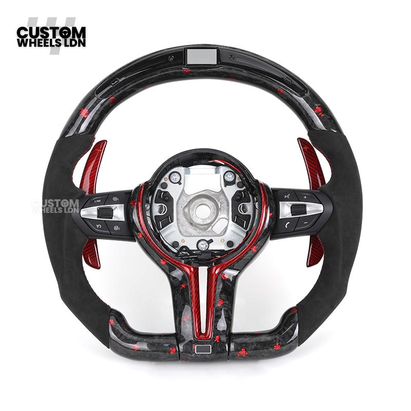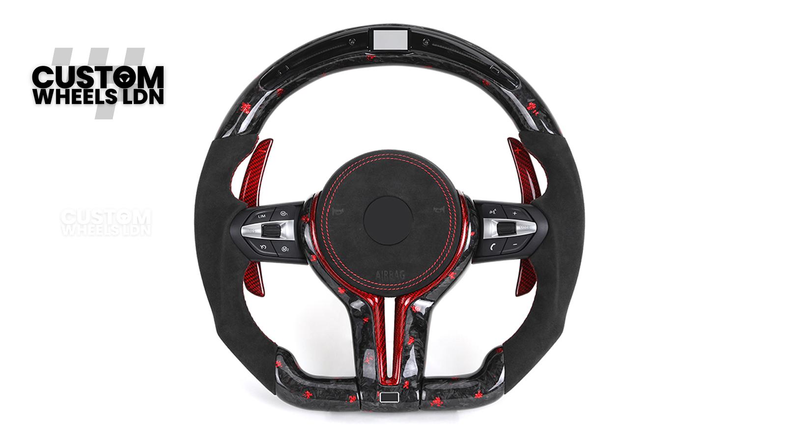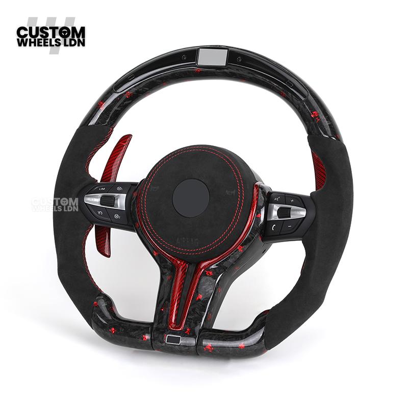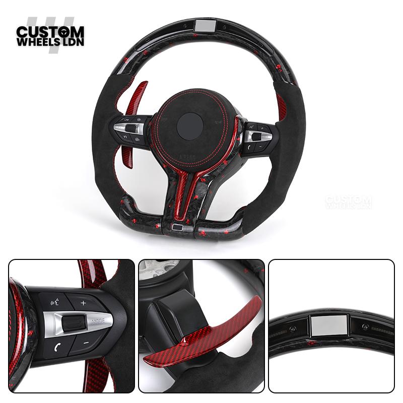 BMW Custom Forged Carbon Steering Wheel with Red Stitching, Red LED Display & Paddles | Complete Plug & Play | Fits BMW F20 F21 F22 F23 F30 F31 F32 F33 F36 F80 F87 E82 E88 E90 E92 E93 + more