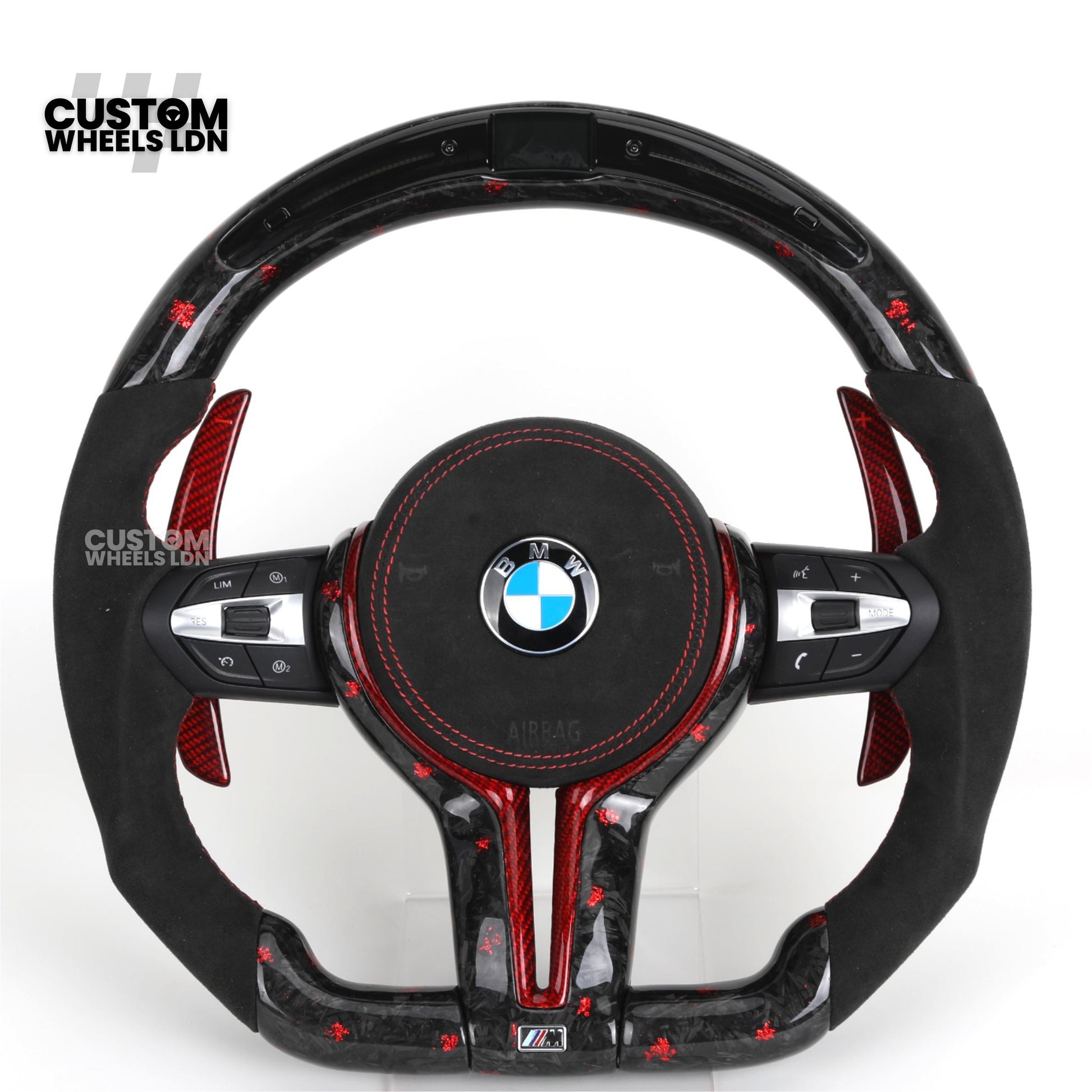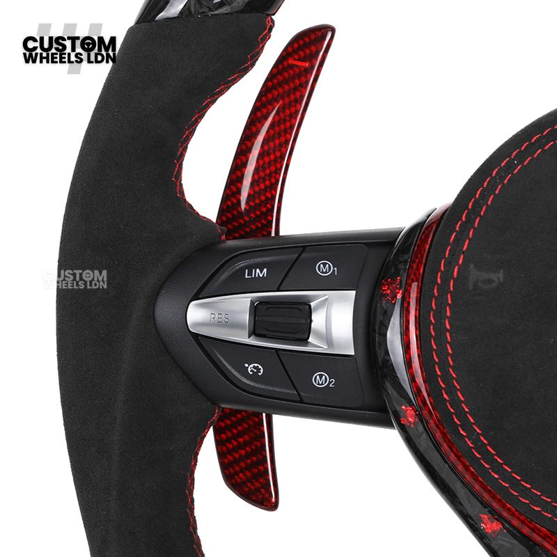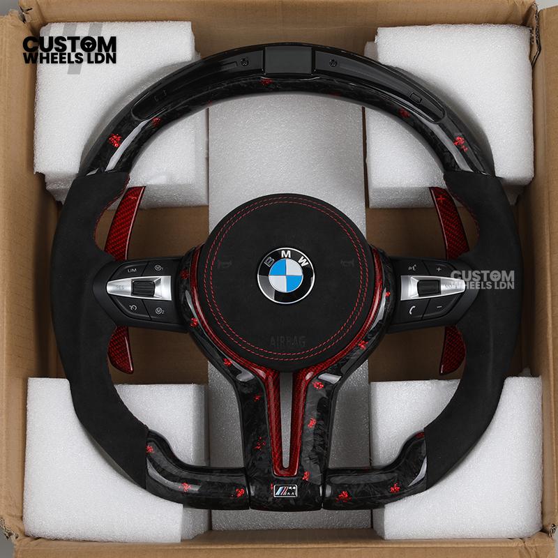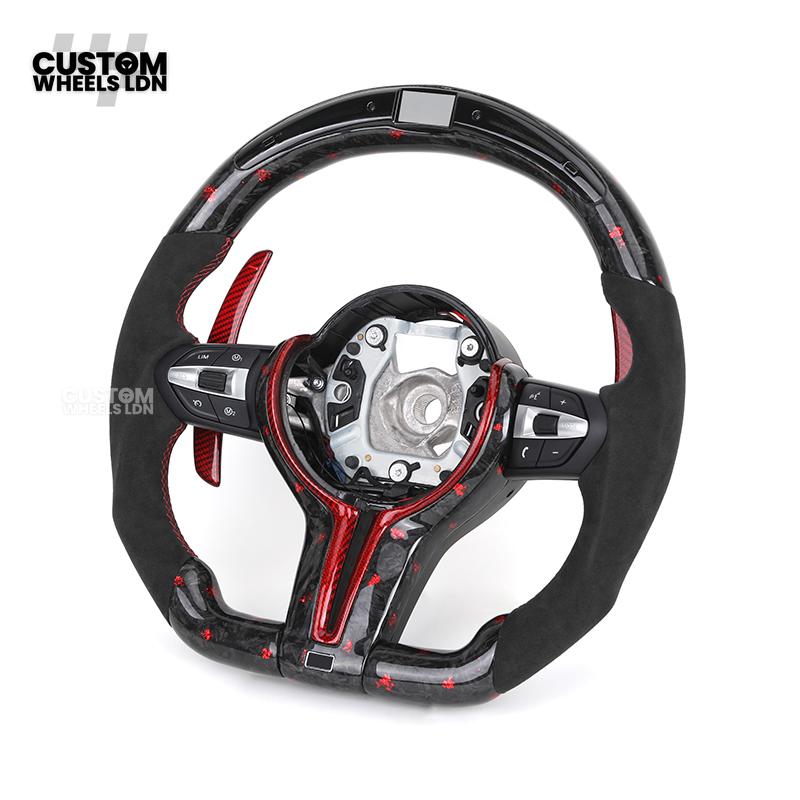 BMW Custom Forged Carbon Steering Wheel with Red Stitching, Red LED Display & Paddles | Complete Plug & Play | Fits BMW F20 F21 F22 F23 F30 F31 F32 F33 F36 F80 F87 E82 E88 E90 E92 E93 + more