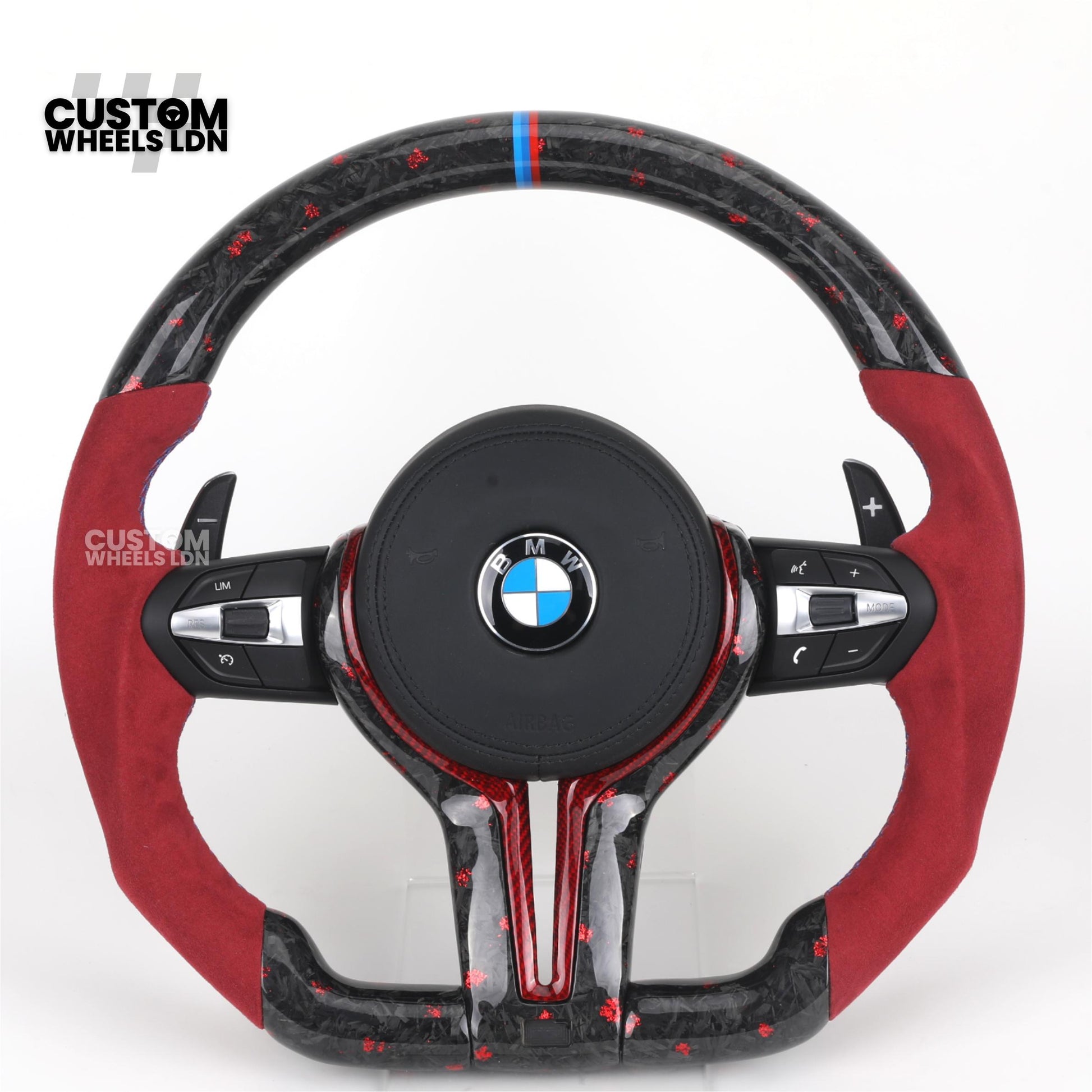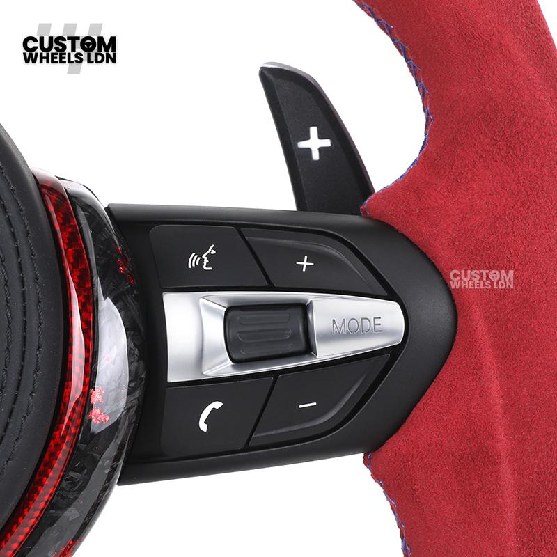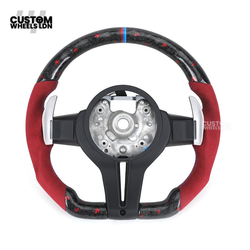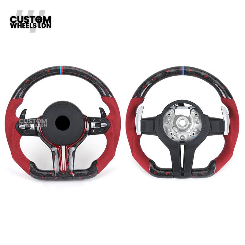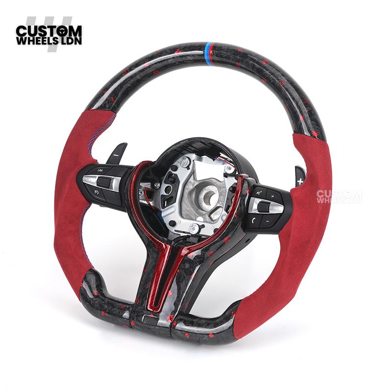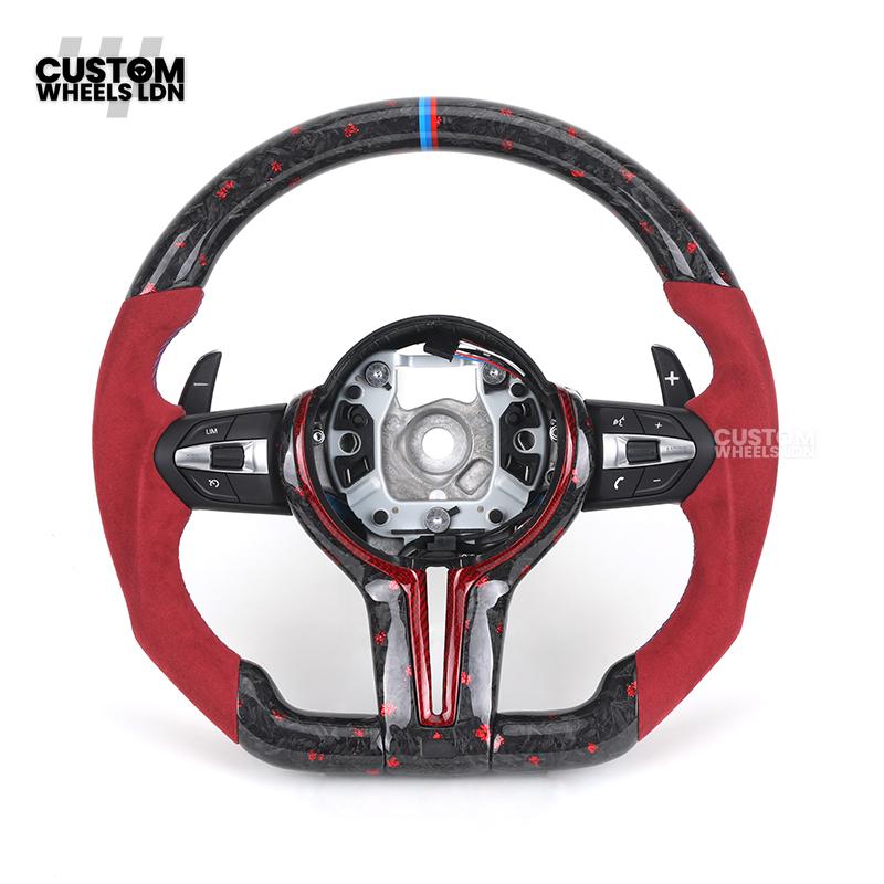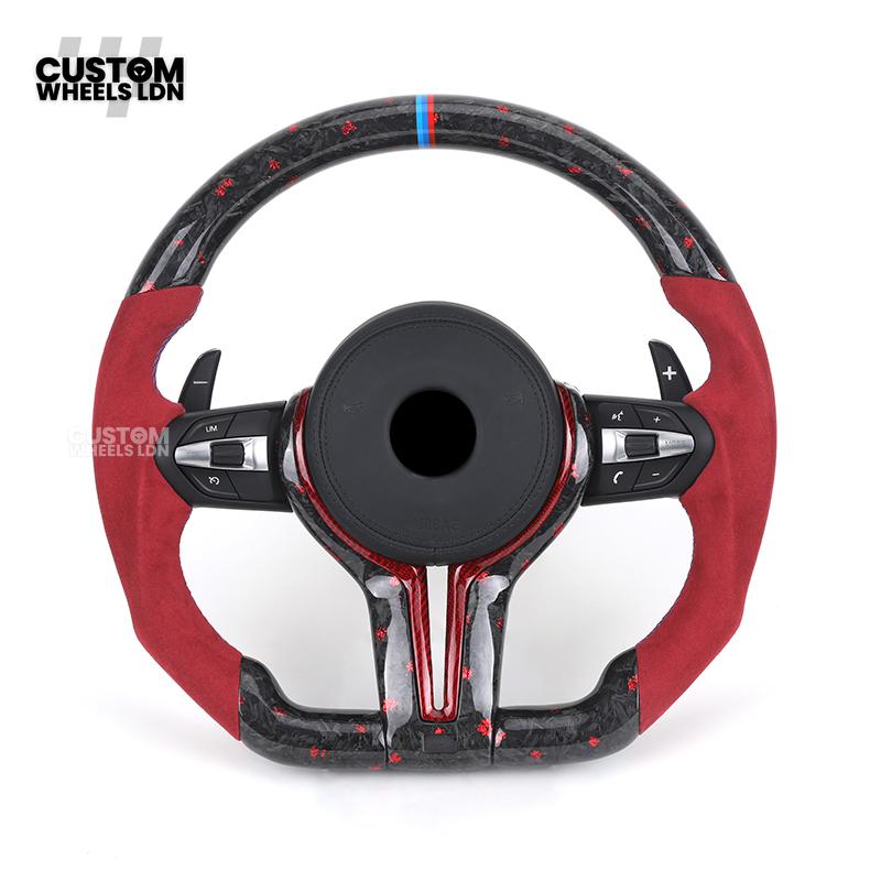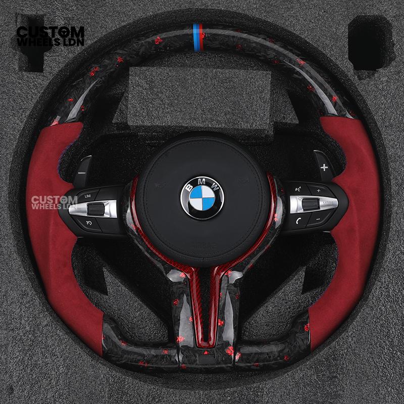 BMW Custom Forged Carbon Steering Wheel with Red Alcantara Grip & M Sport Stripe | Plug & Play Complete Wheel | Fits BMW F20 F21 F22 F23 F30 F31 F32 F33 F36 F80 F87 E82 E88 E90 E92 E93 + more