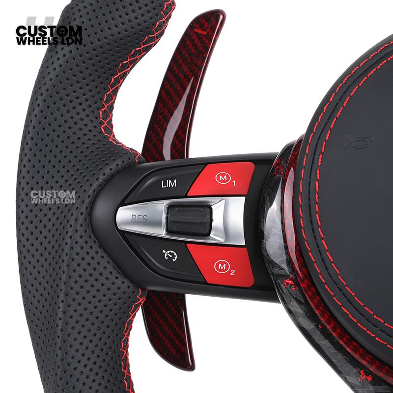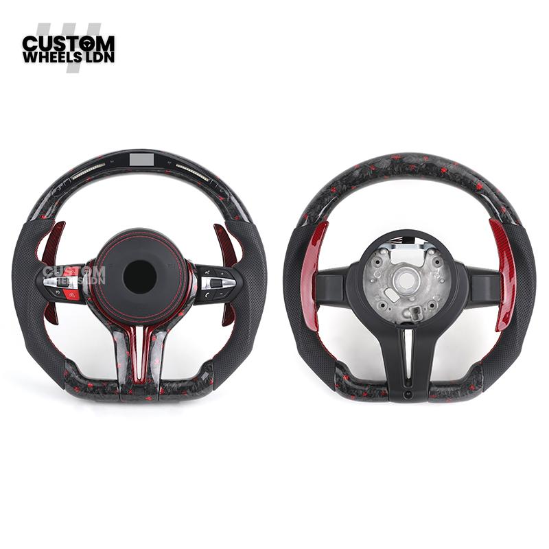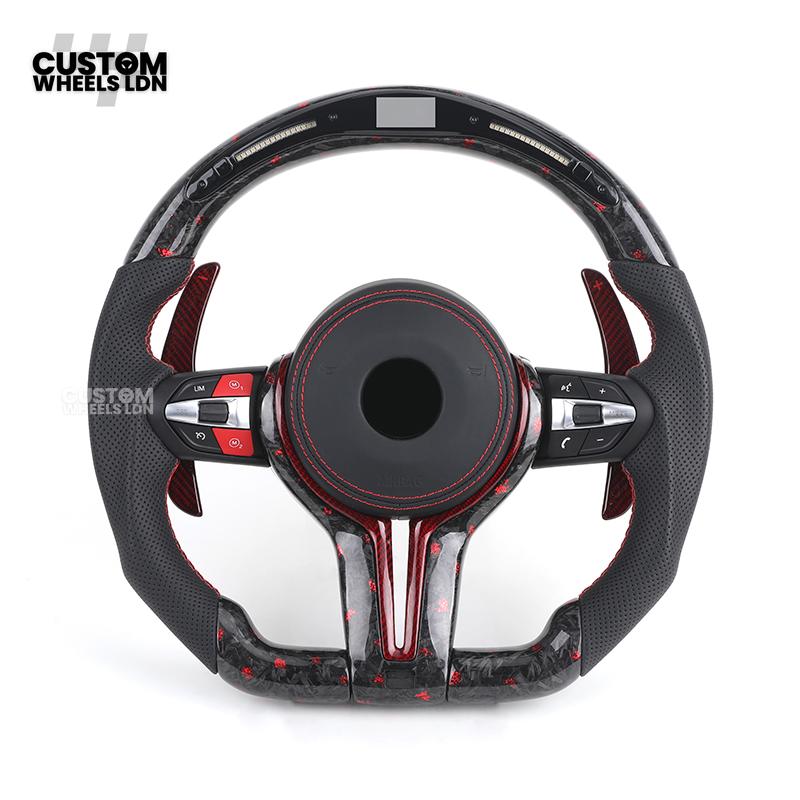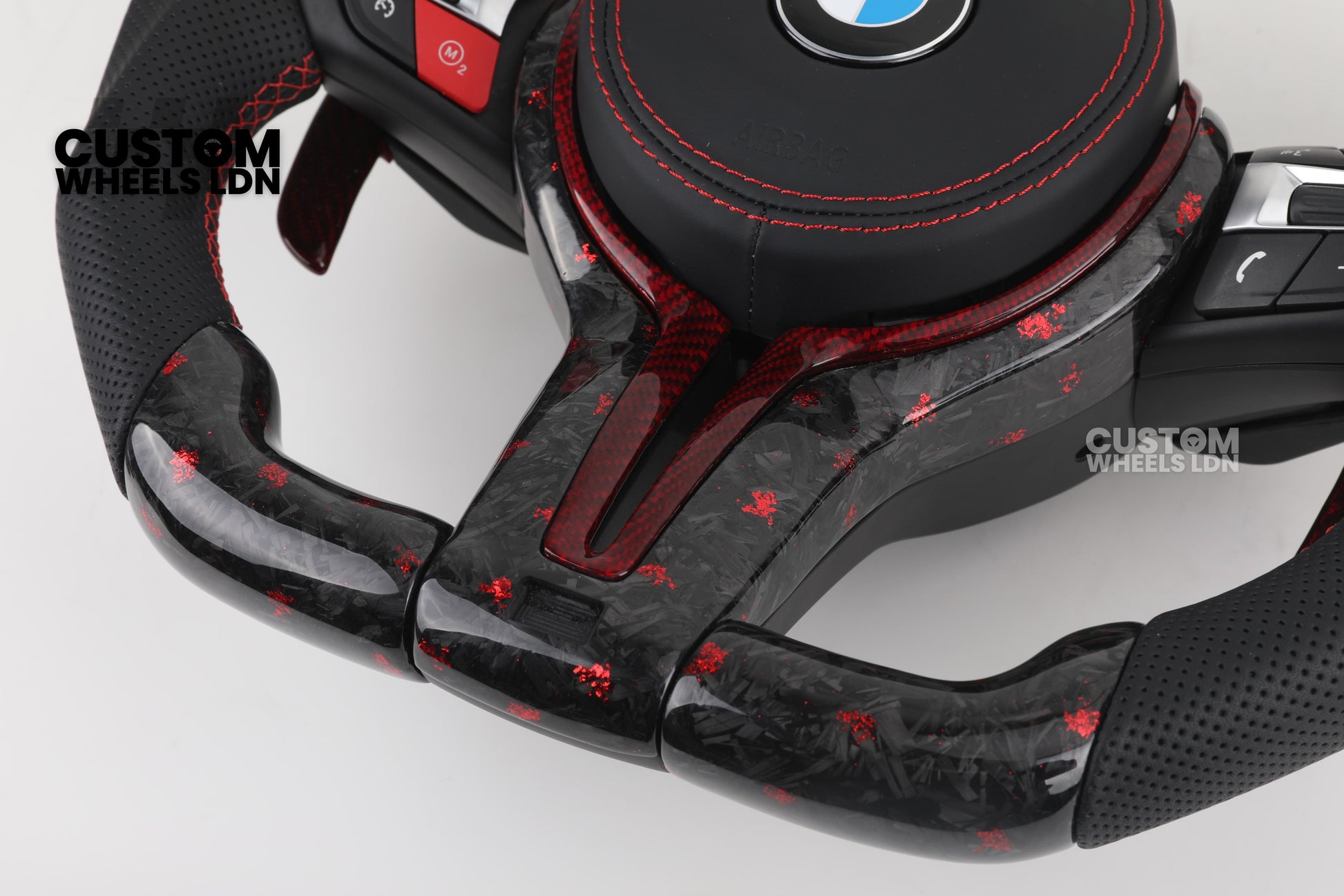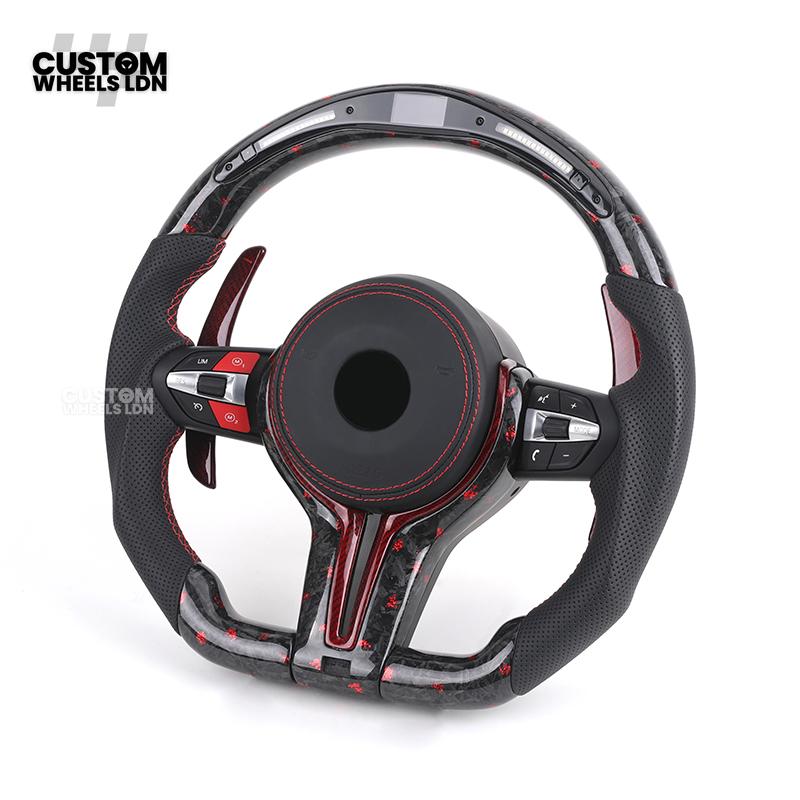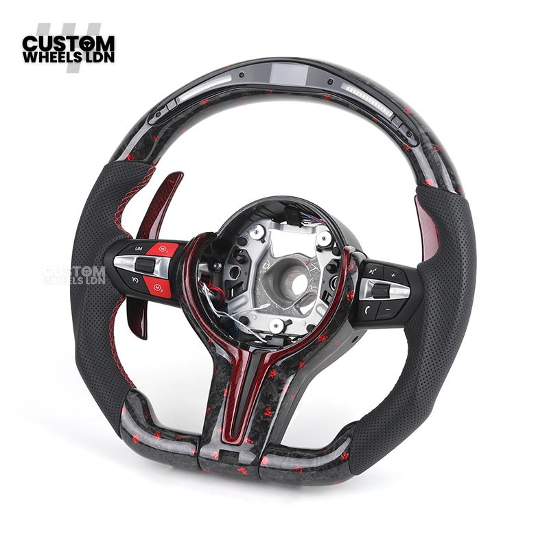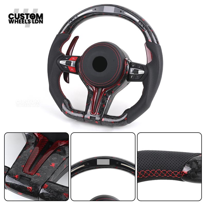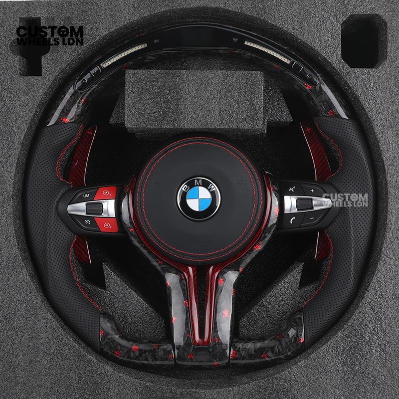 BMW Custom Red Forged Carbon LED Steering Wheel with Red Stitching | Complete Plug & Play | Fits F20 F22 F30 F32 F36 F80 F87 E90 E92 E93 + more