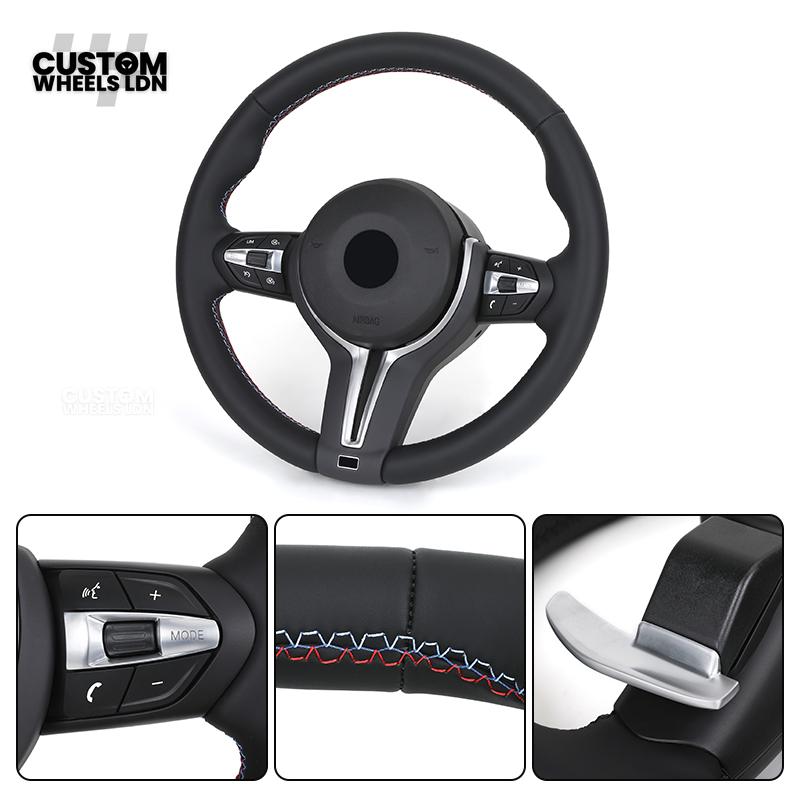 BMW Custom Steering Wheel | M Performance Style | Thin Paddles | M Stitching | Plug & Play | Fits 1/2/3/4 Series, F Series + more