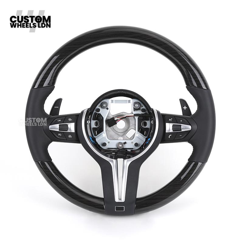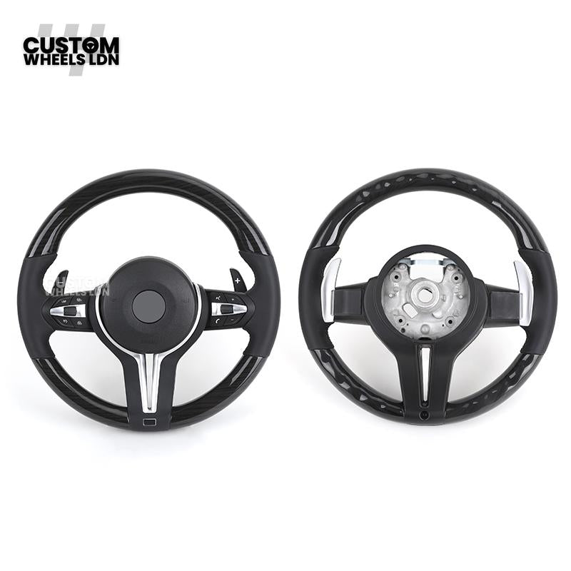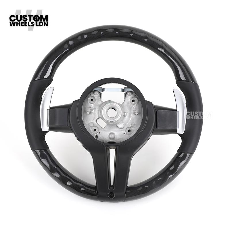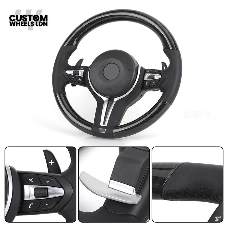 BMW Custom Steering Wheel | Gloss Black Carbon Top and Bottom | Thin Paddles | M Sport | Complete Plug & Play | Fits 1/2/3/4 Series + more