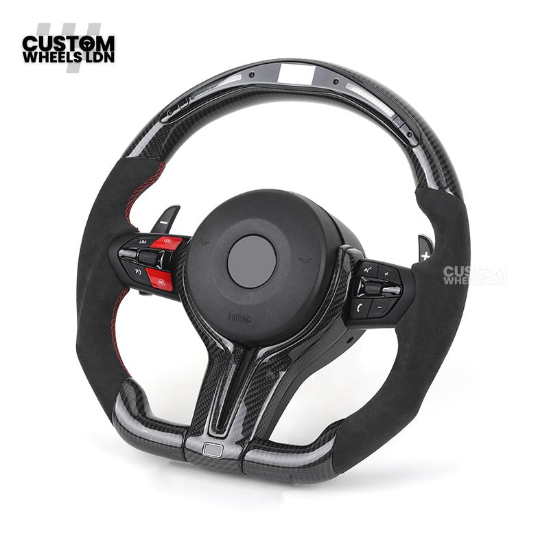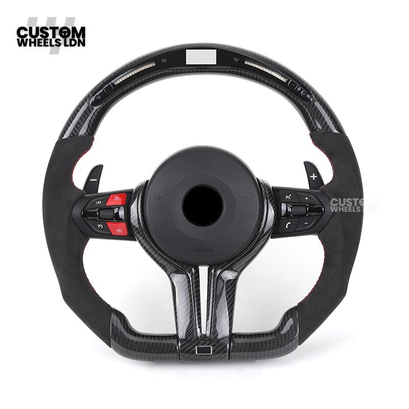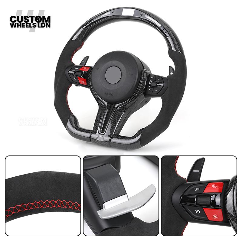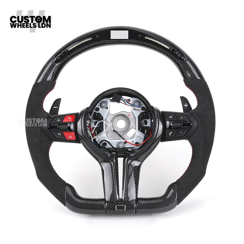 BMW Custom LED Steering Wheel – Gloss Carbon Fibre with Alcantara & Red Accents | M-Sport Style | Fits 3/4/5 Series, X Models + more | Plug & Play | Fits older models