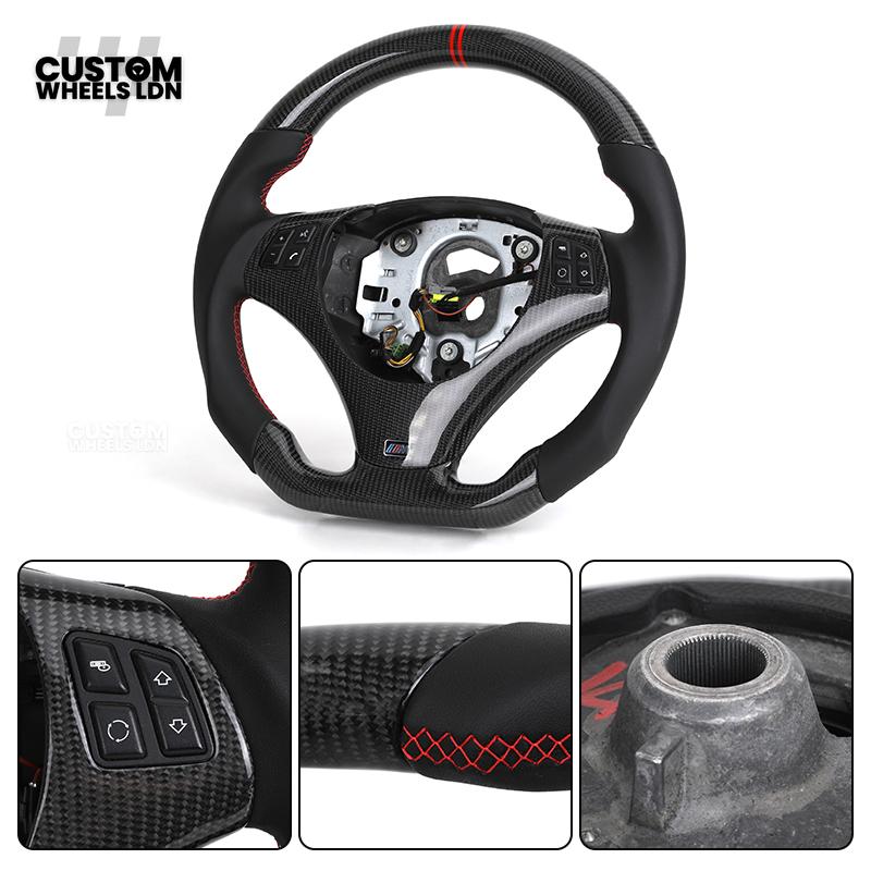 BMW Custom E-Series Carbon Fibre Steering Wheel – Red Centre Stripe | M-Sport Style | Plug & Play | Fits older models