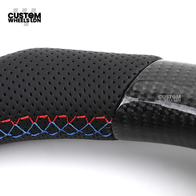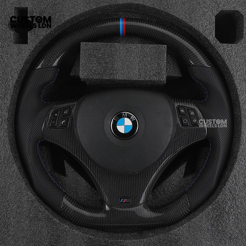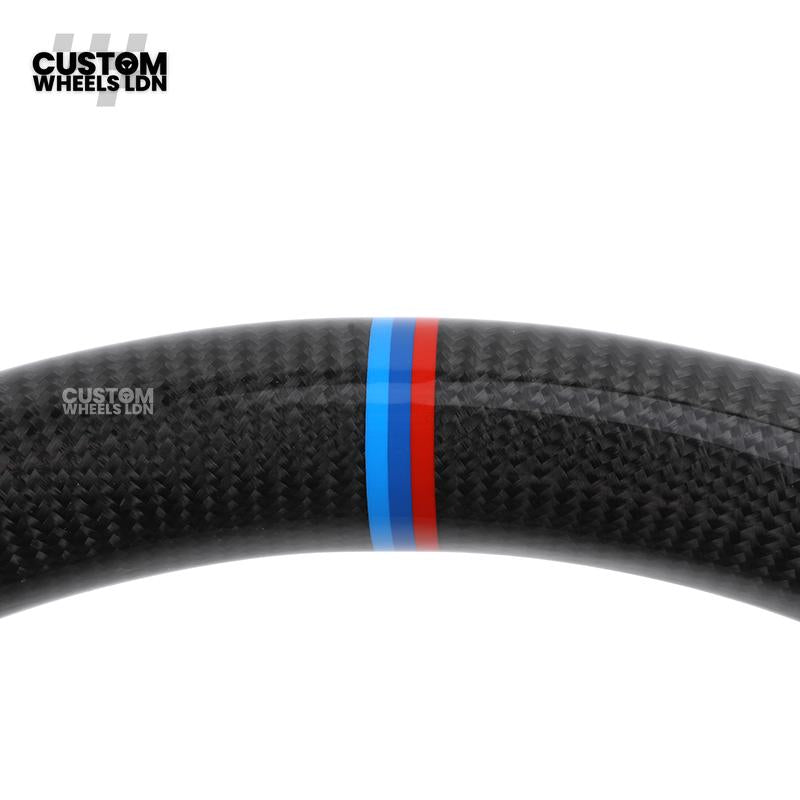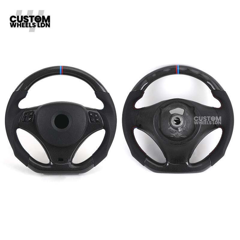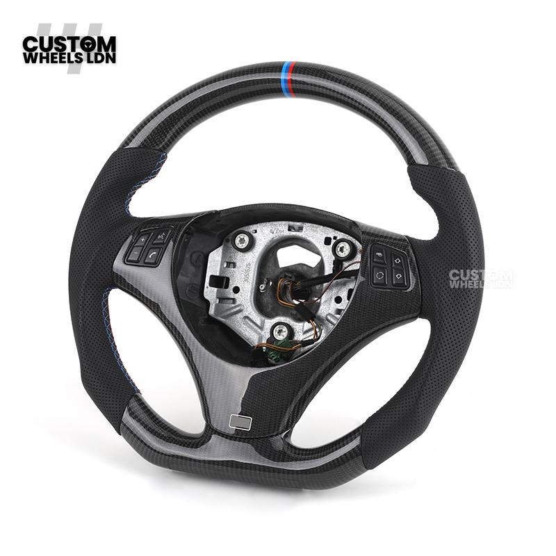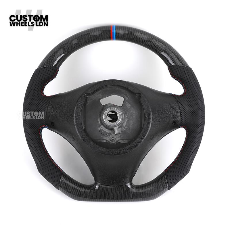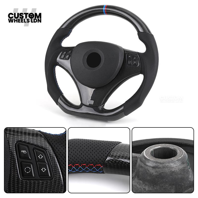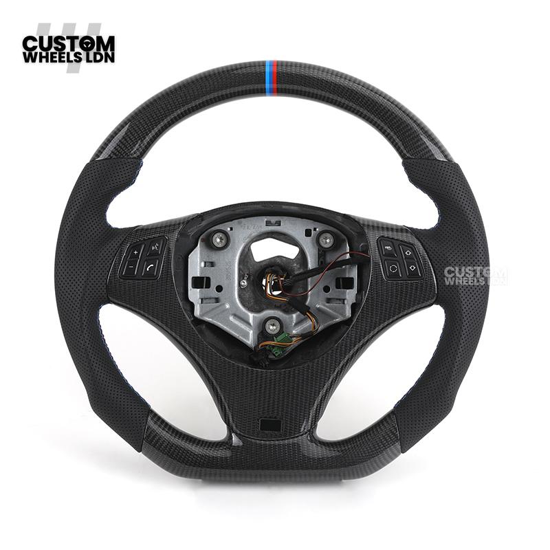 BMW Custom E-Series Carbon Fibre Steering Wheel – M-Stripe Top Marker | Perforated Leather Grip | Plug & Play | Fits older models