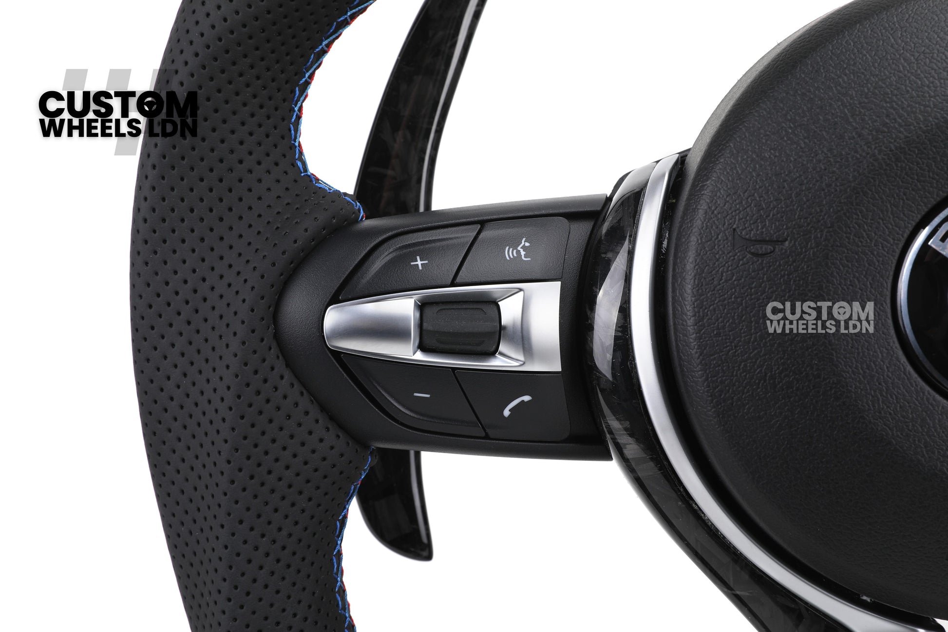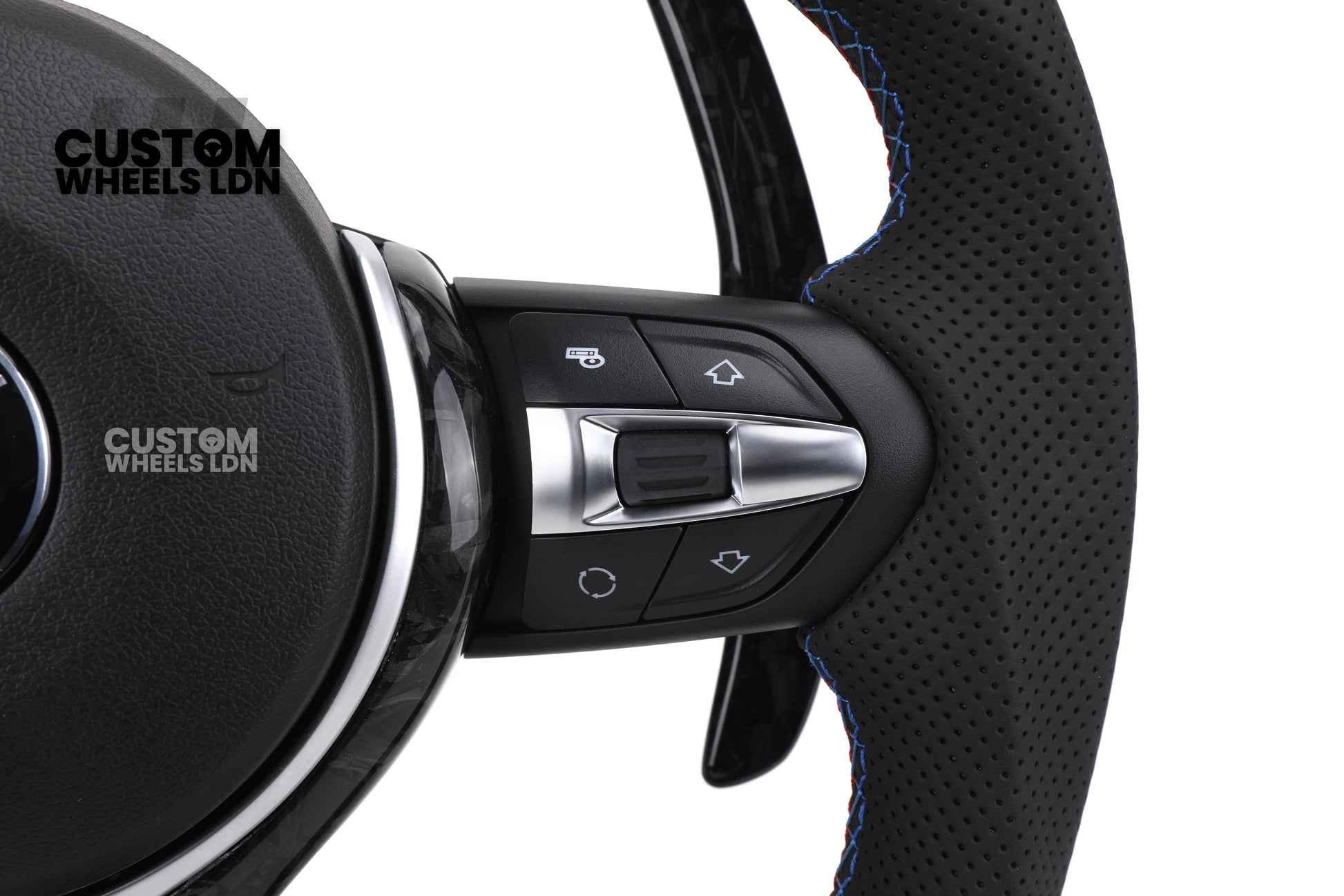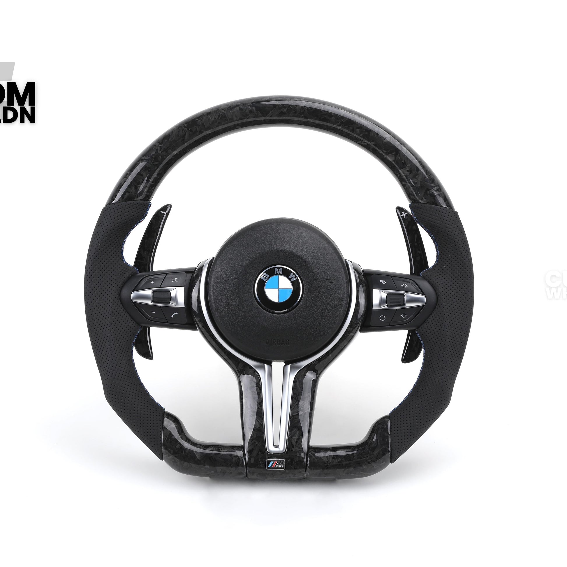 BMW Custom Steering Wheel | Forged Carbon + M Stitching + Forged Carbon Paddles | Flat Bottom | Complete Plug & Play | Fits 1/2/3/4 Series, F E Series + more