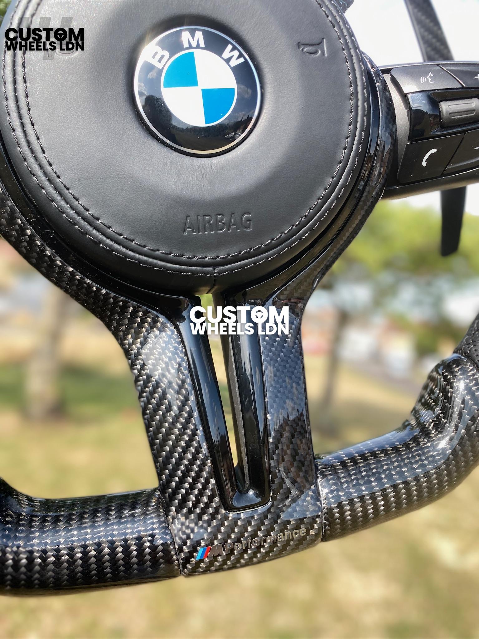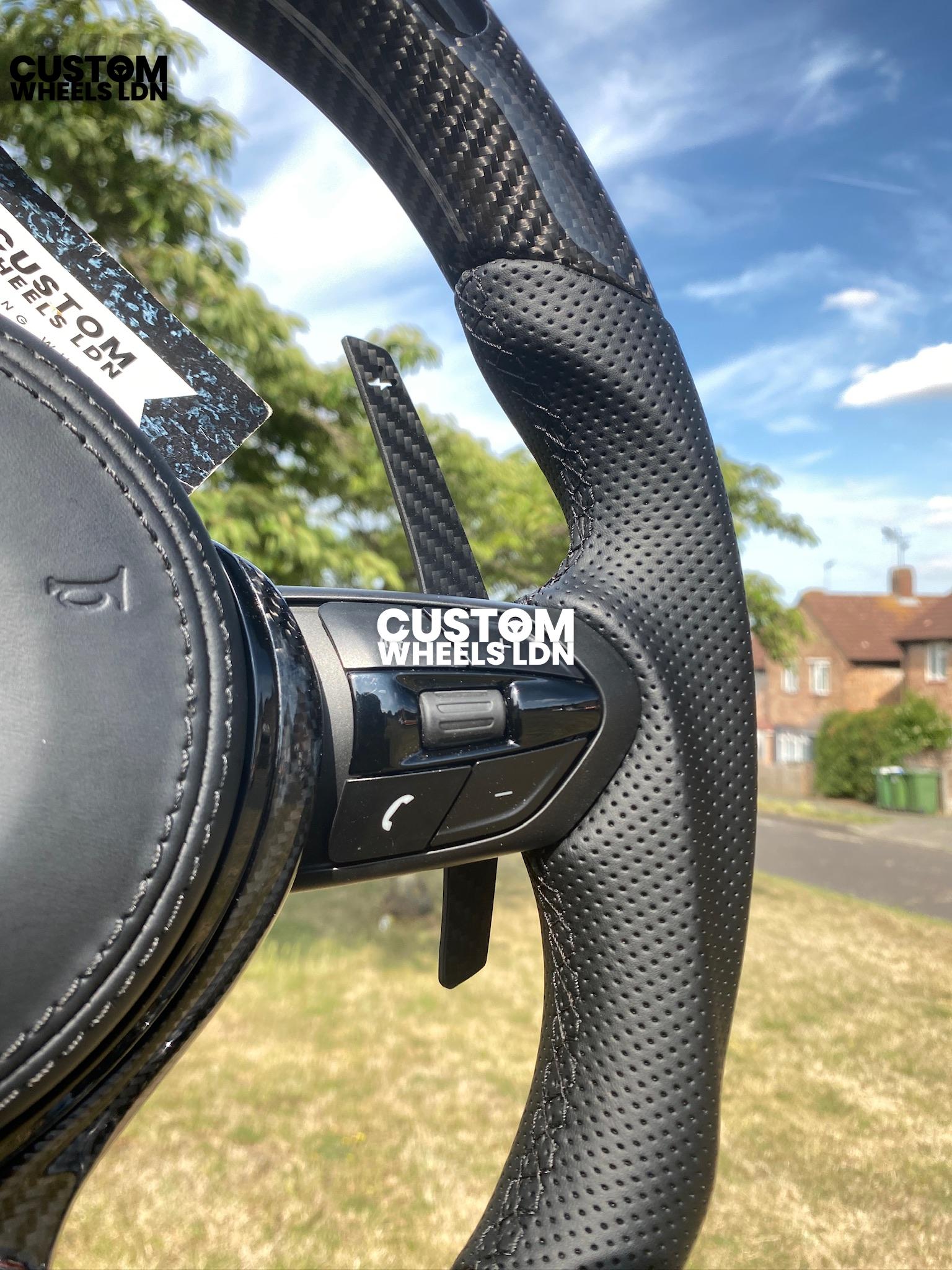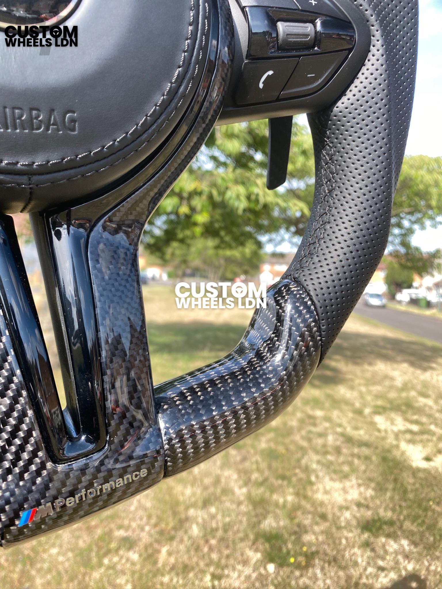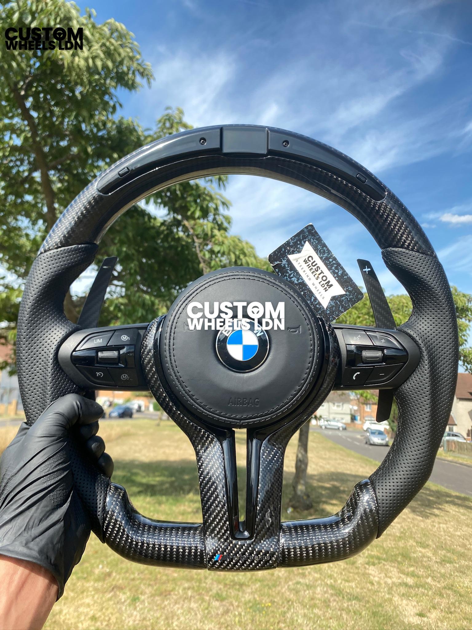 BMW Custom Flat Bottom Steering Wheel – Led rev display, Gloss Carbon Fibre, Magnetic Paddles, All-Black OEM Buttons | Fits F Series, G Series + more | Plug & Play | With Airbag | Upgrade for Older Models Available