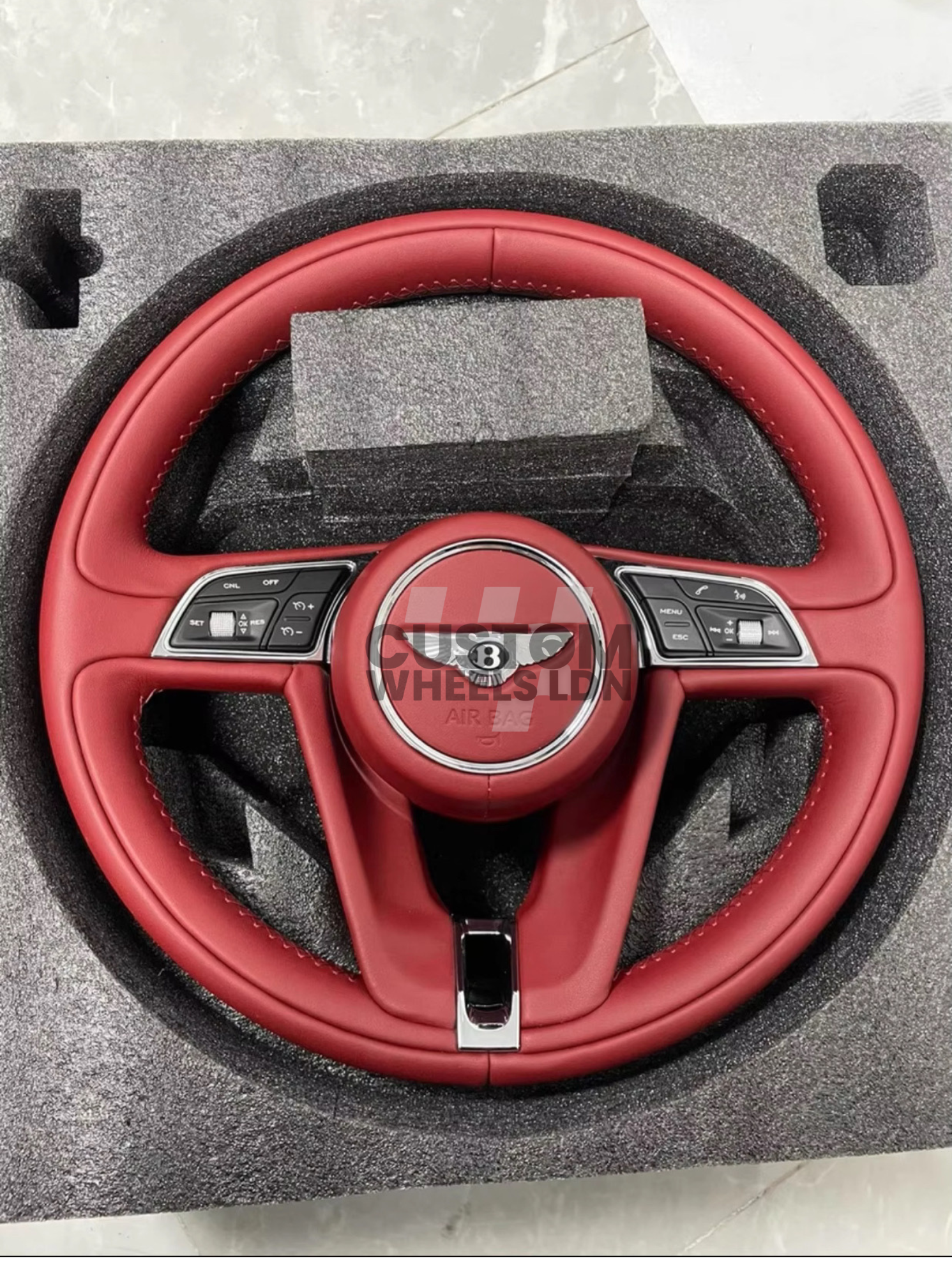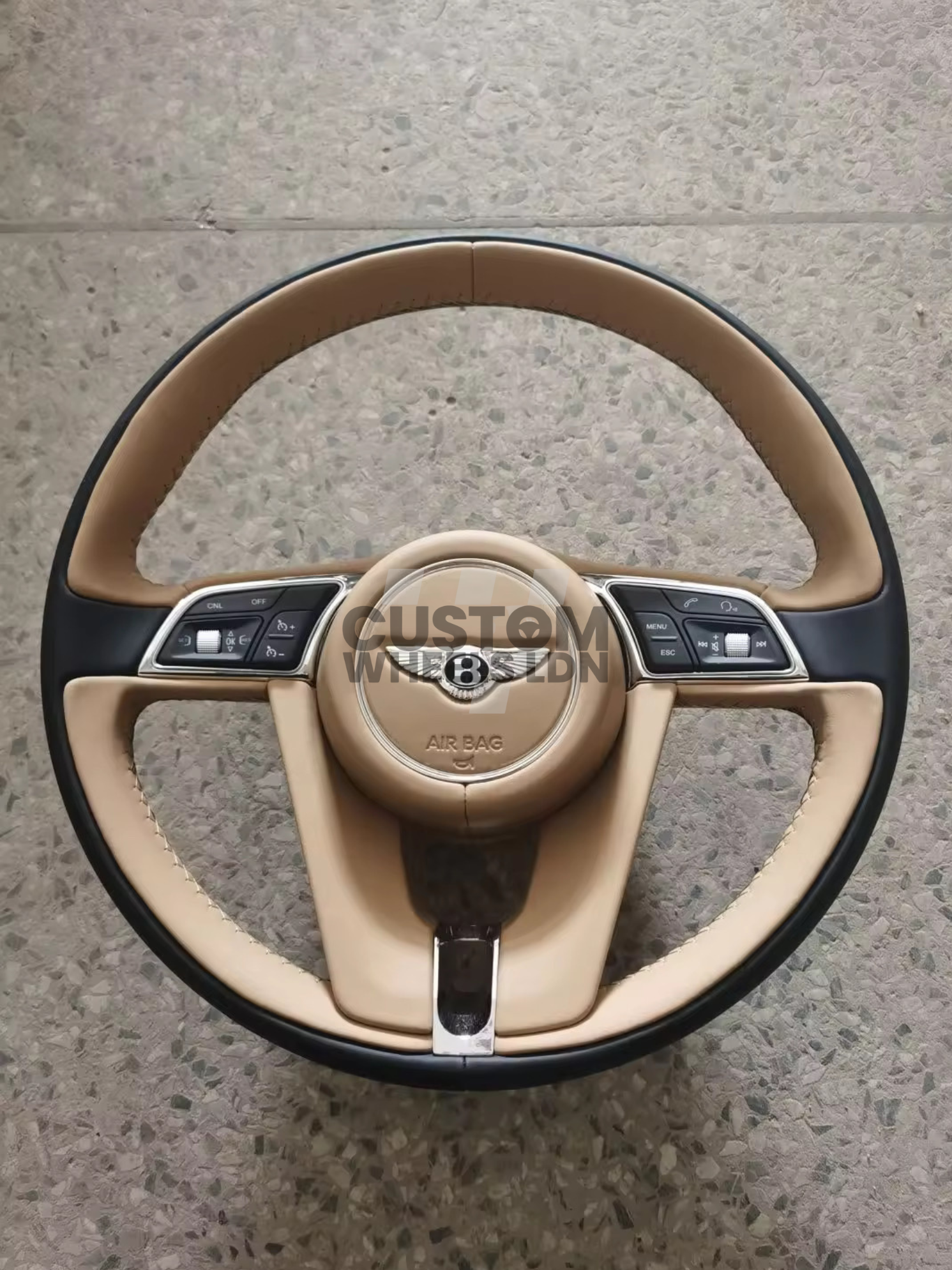 Dies ist ein maßgeschneidertes Lenkrad für einen Bentley GT (Gen 1) aus dem Jahr 2006, das nach spezifischen Anforderungen gefertigt wurde. Das Lenkrad verfügt über: