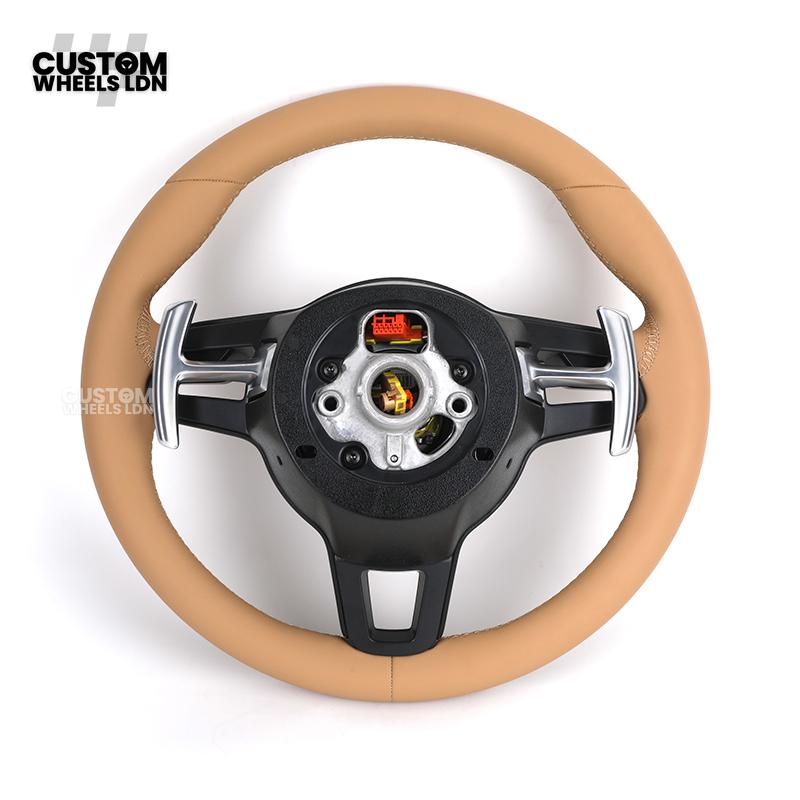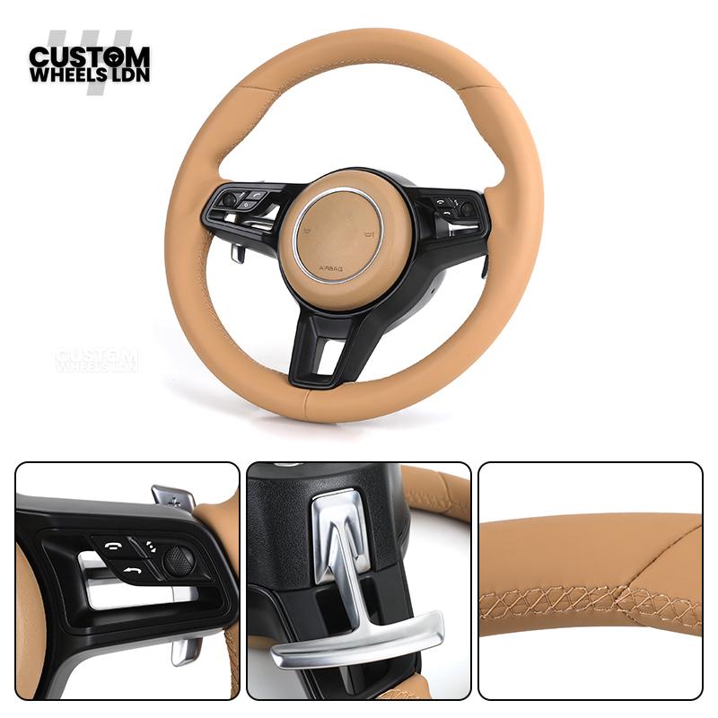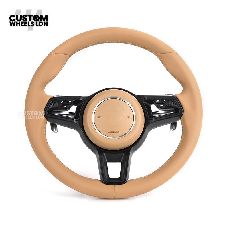 Porsche Custom Steering Wheel – Full Beige Leather with Black Trim | Fits 997, 991, Panamera, Cayenne (2000+ Plug & Play)