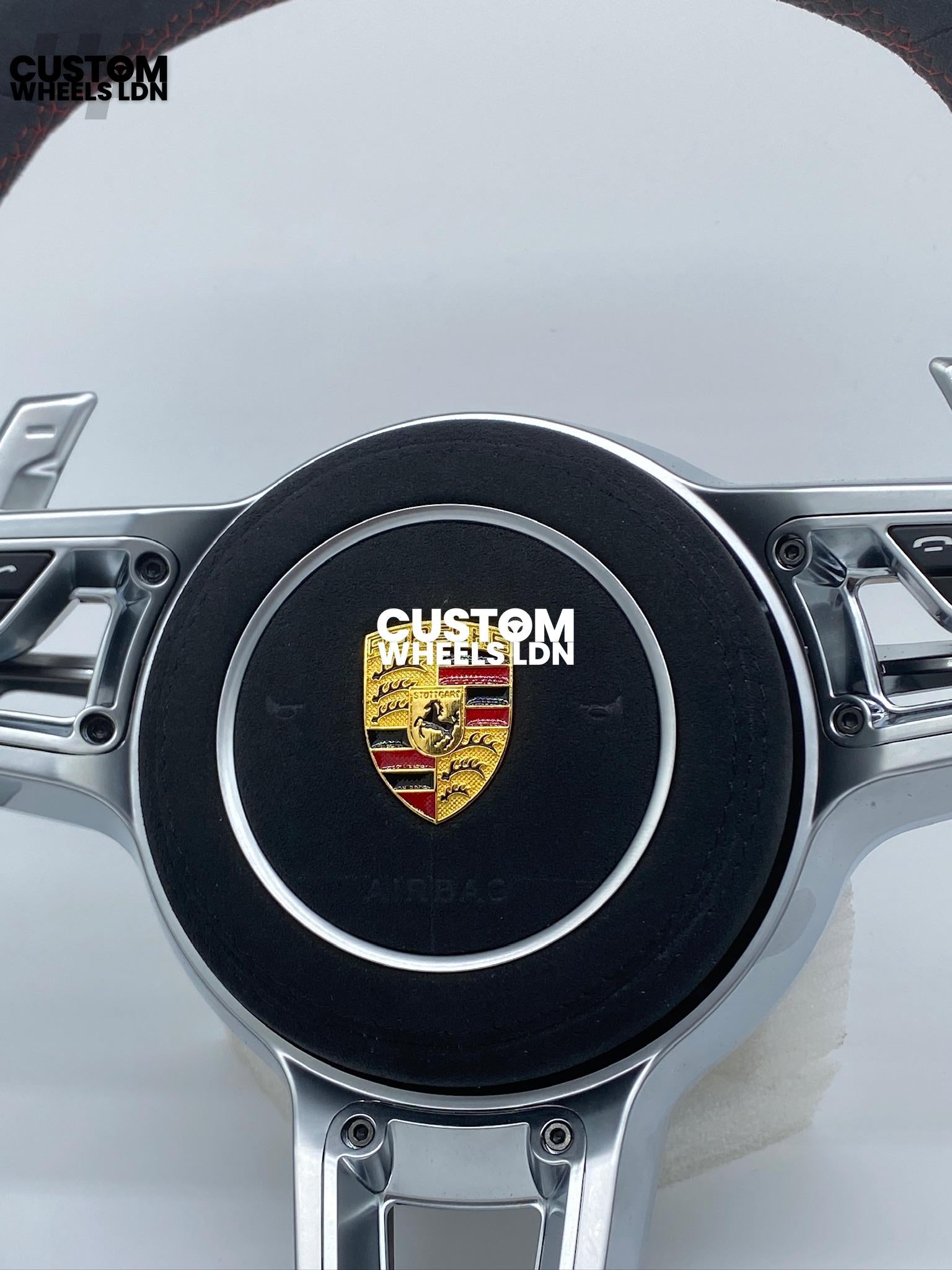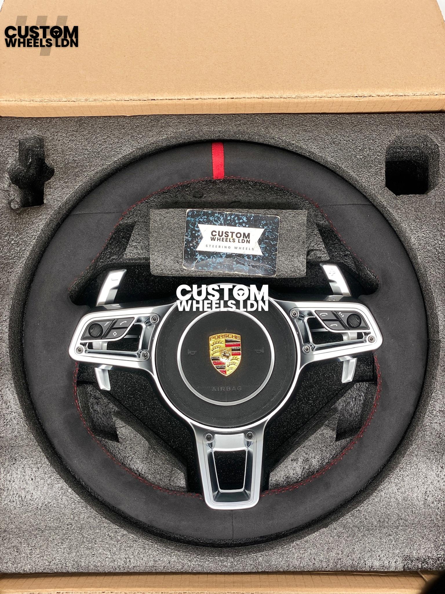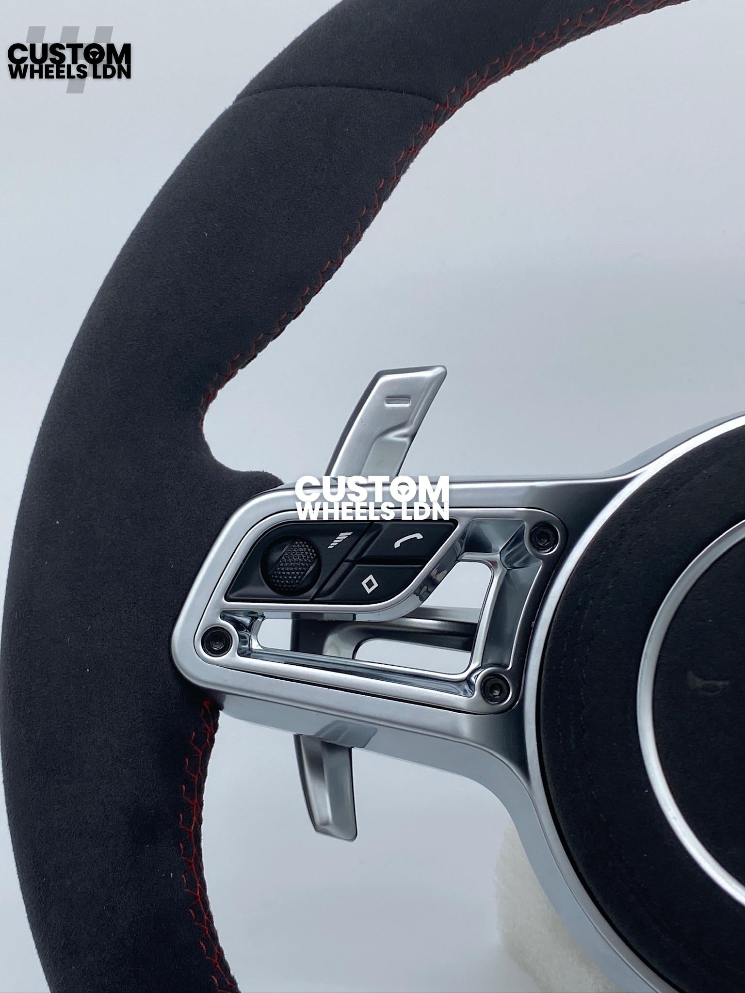 Porsche Custom Steering Wheel GT3RS Style – Alcantara, Silver Extended Paddles, Red Stitching & Stripe | Fits 997, 991.1, 987, Cayman, Boxster, Panamera, Macan, Cayenne + more | Plug & Play | With Airbag | Upgrade for Older Models Available