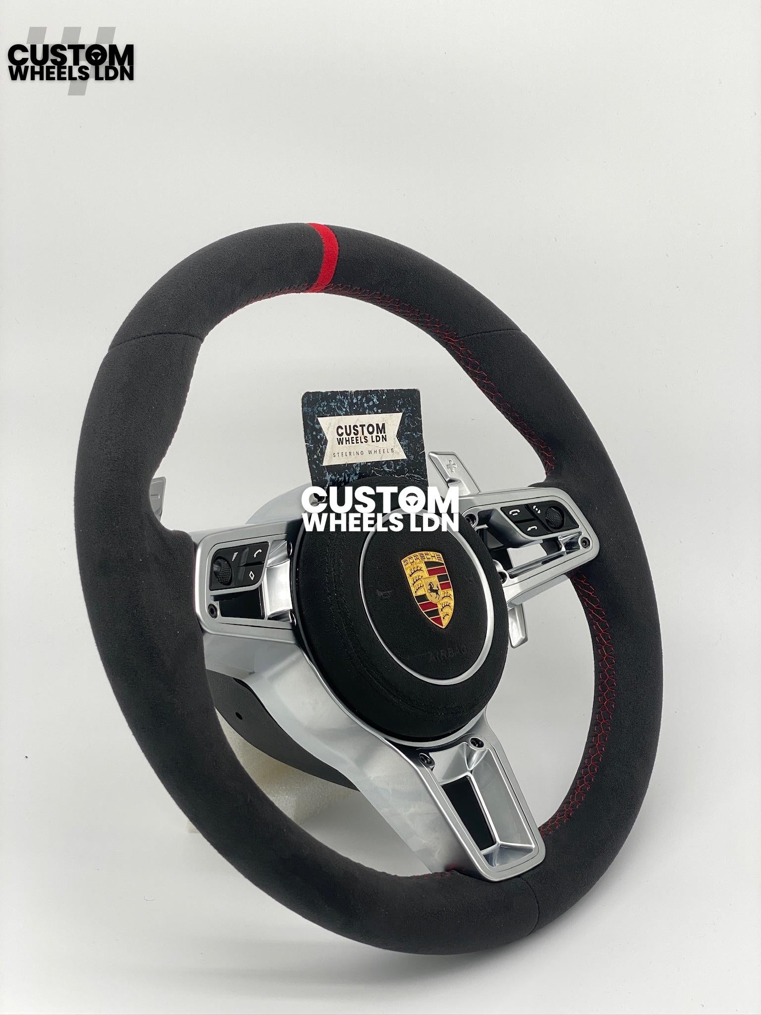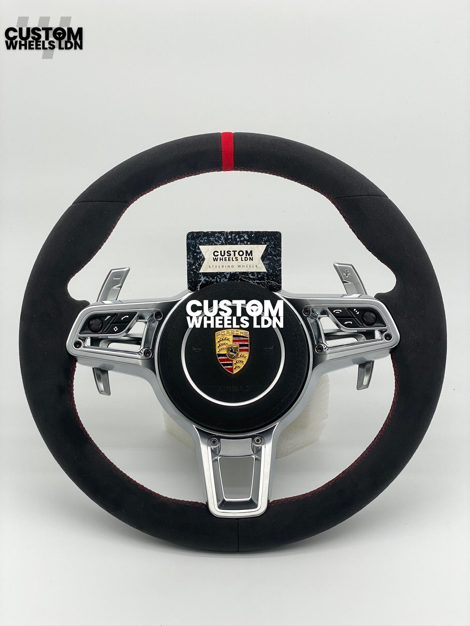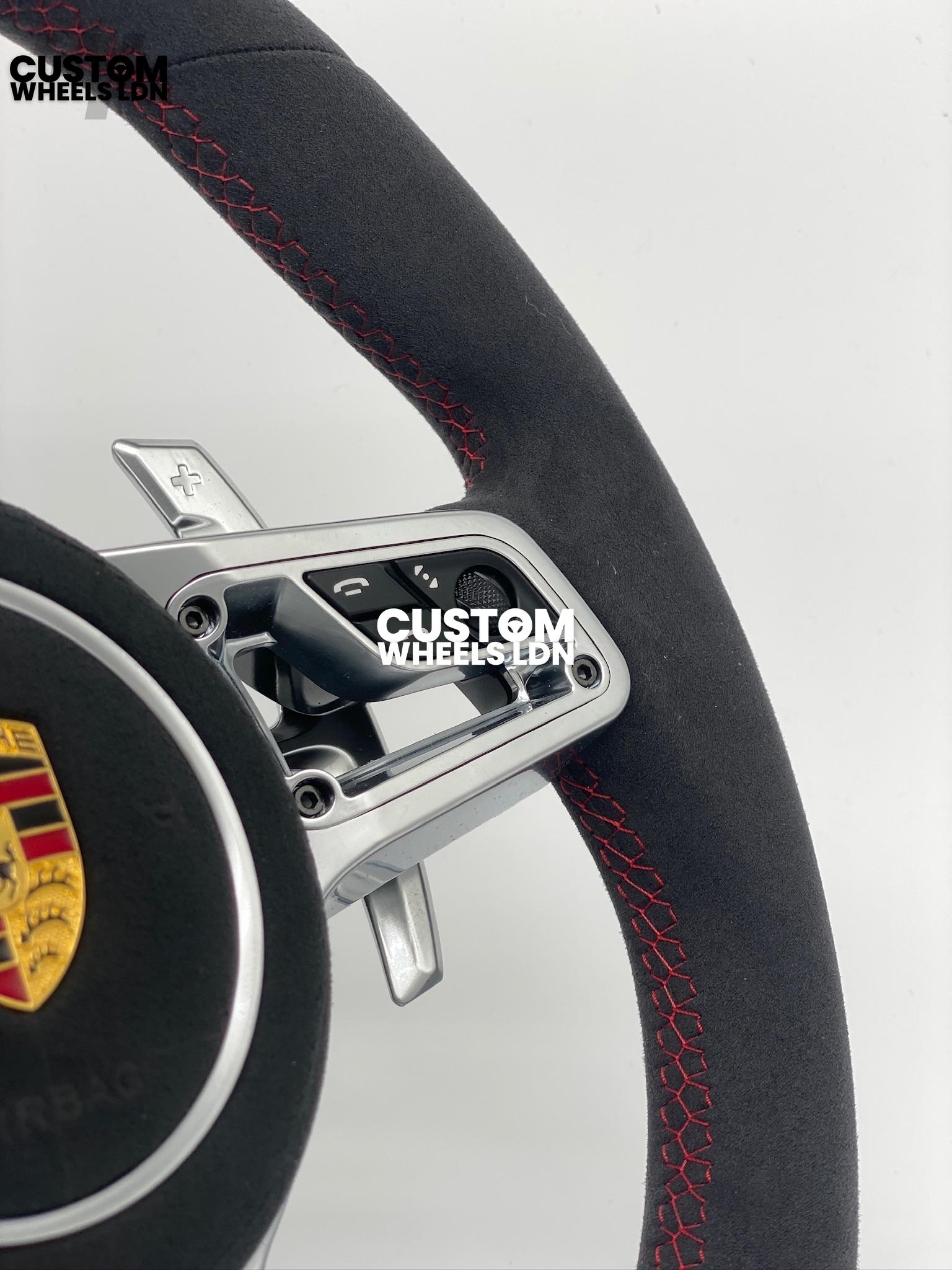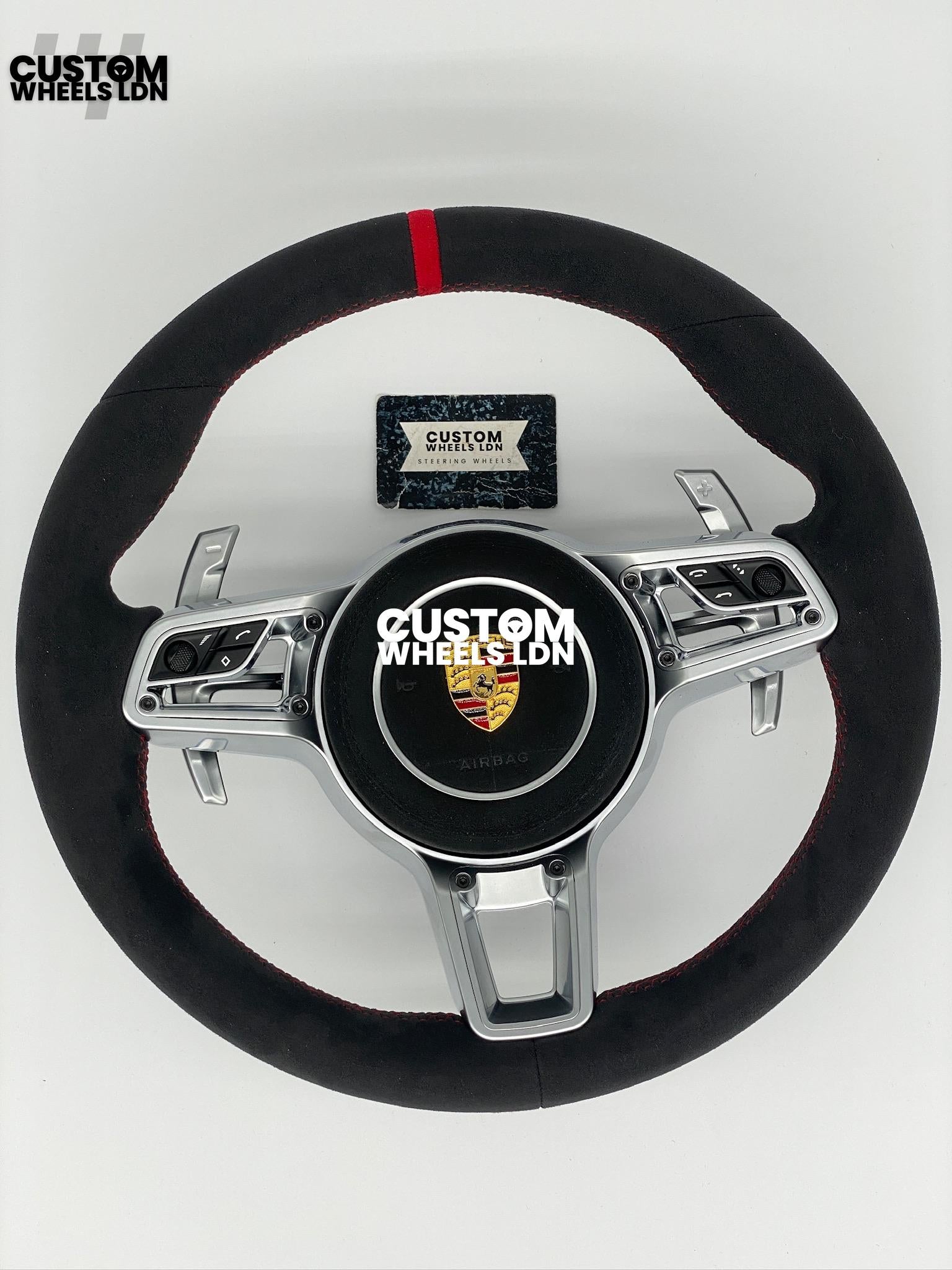 Porsche Custom Steering Wheel GT3RS Style – Alcantara, Silver Extended Paddles, Red Stitching & Stripe | Fits 997, 991.1, 987, Cayman, Boxster, Panamera, Macan, Cayenne + more | Plug & Play | With Airbag | Upgrade for Older Models Available