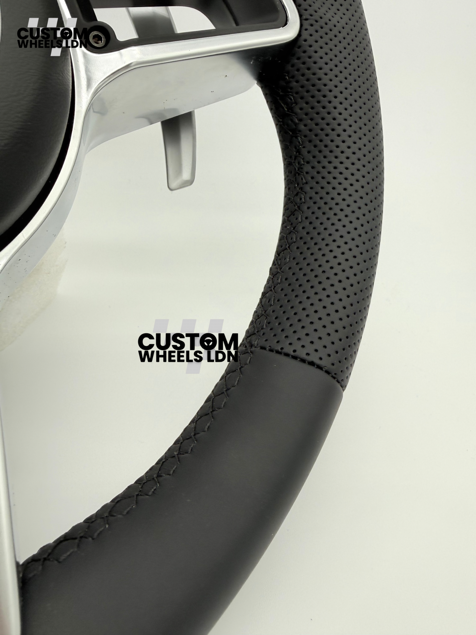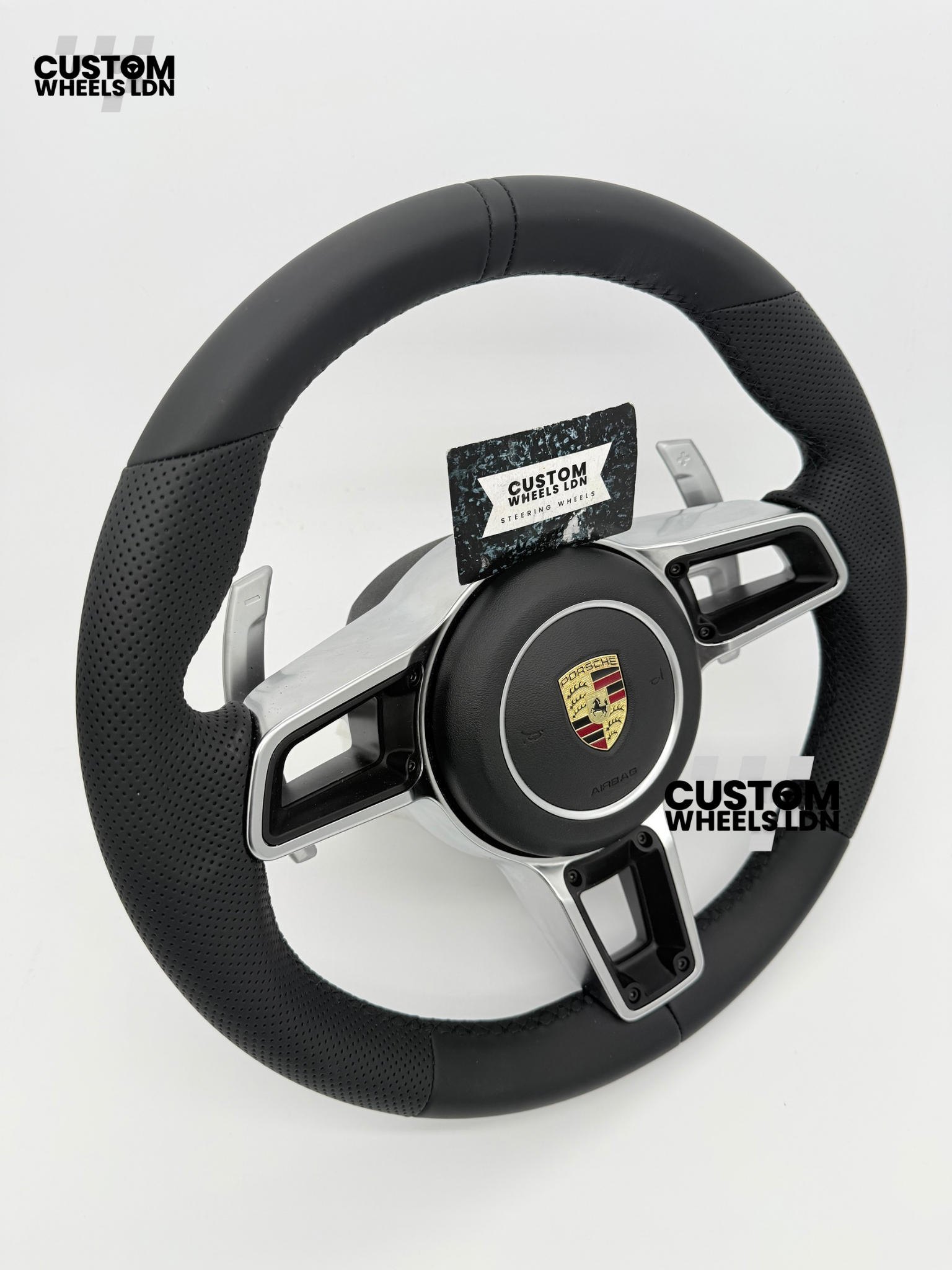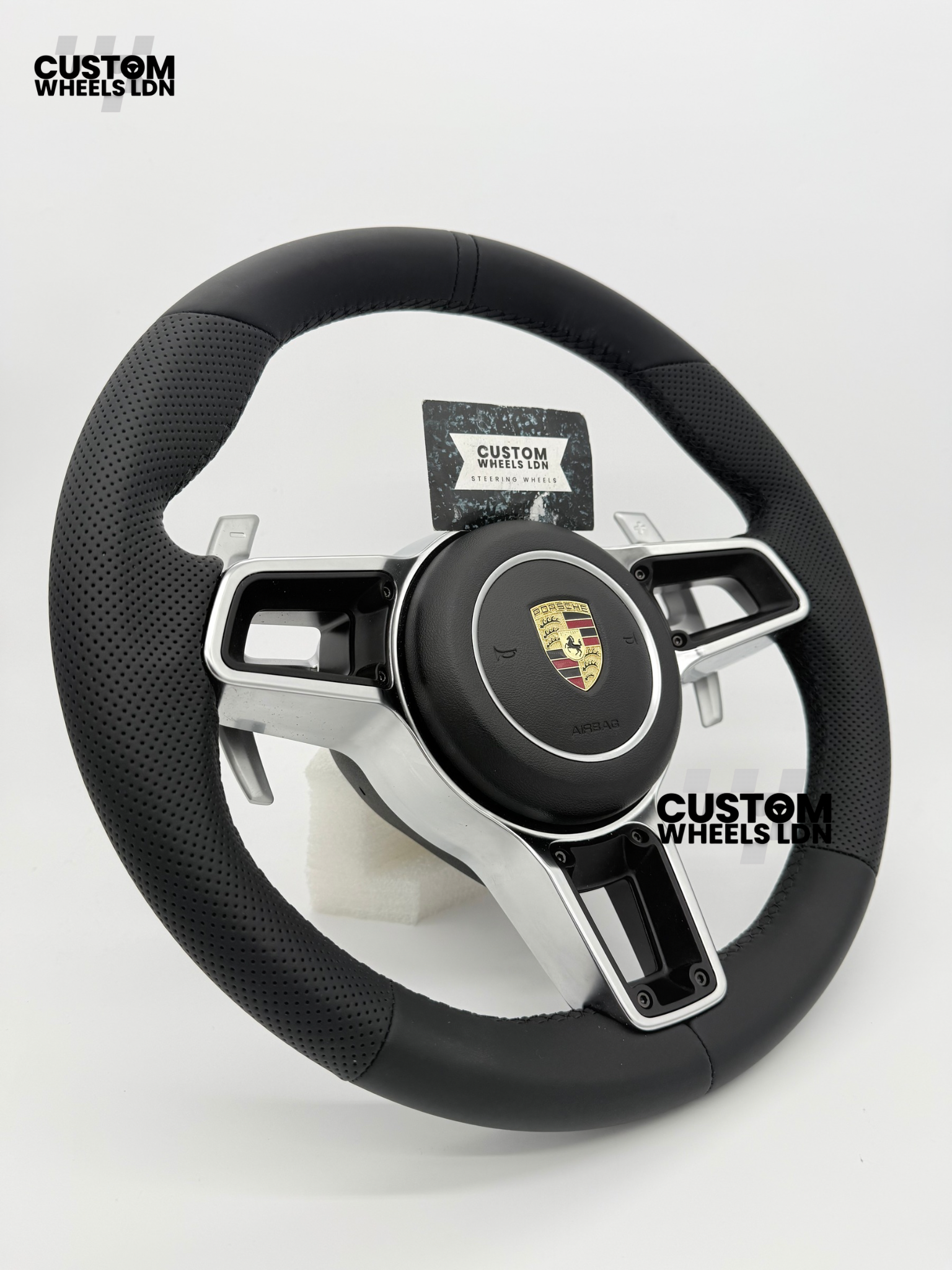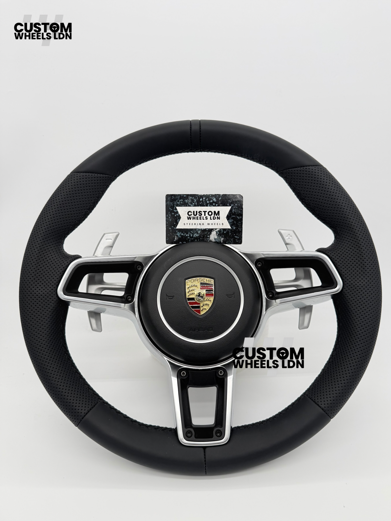 Porsche Custom OEM Steering Wheel – Smooth & Perforated Leather, Silver Trims, OEM Paddles | Fits 991, 997, 987, Cayman, Boxster, Macan, Cayenne + more | Plug & Play | With Airbag | Upgrade for Older Models Available