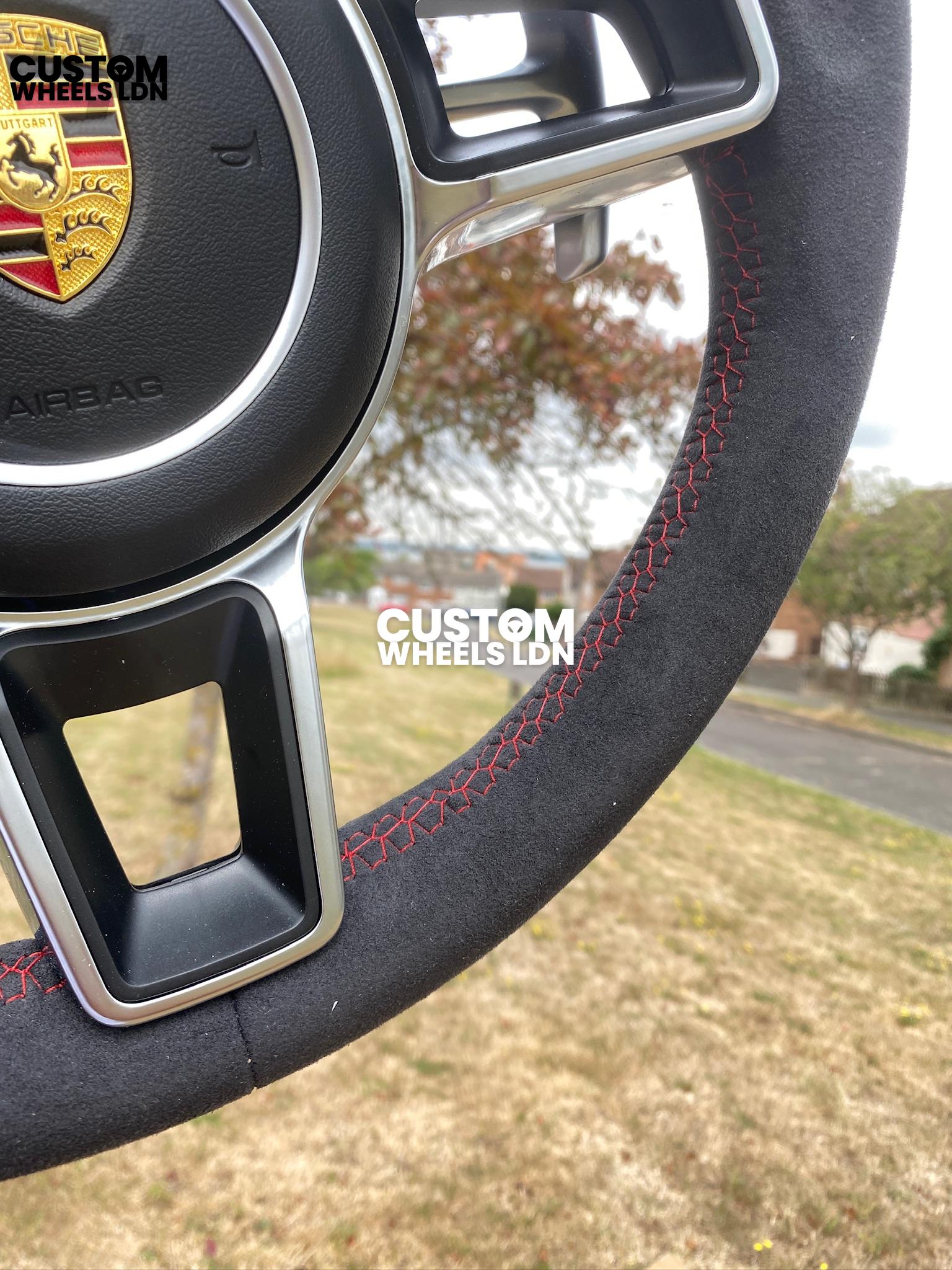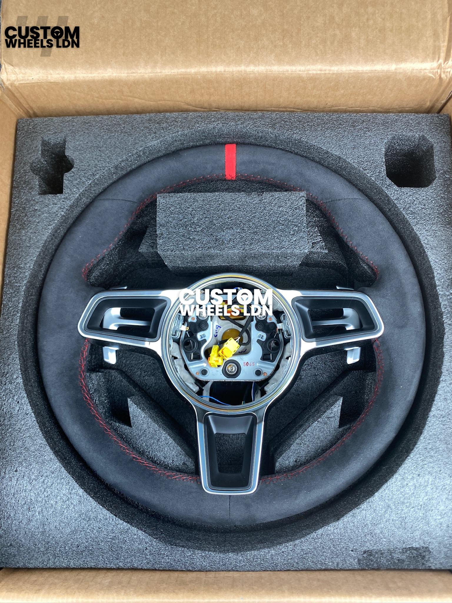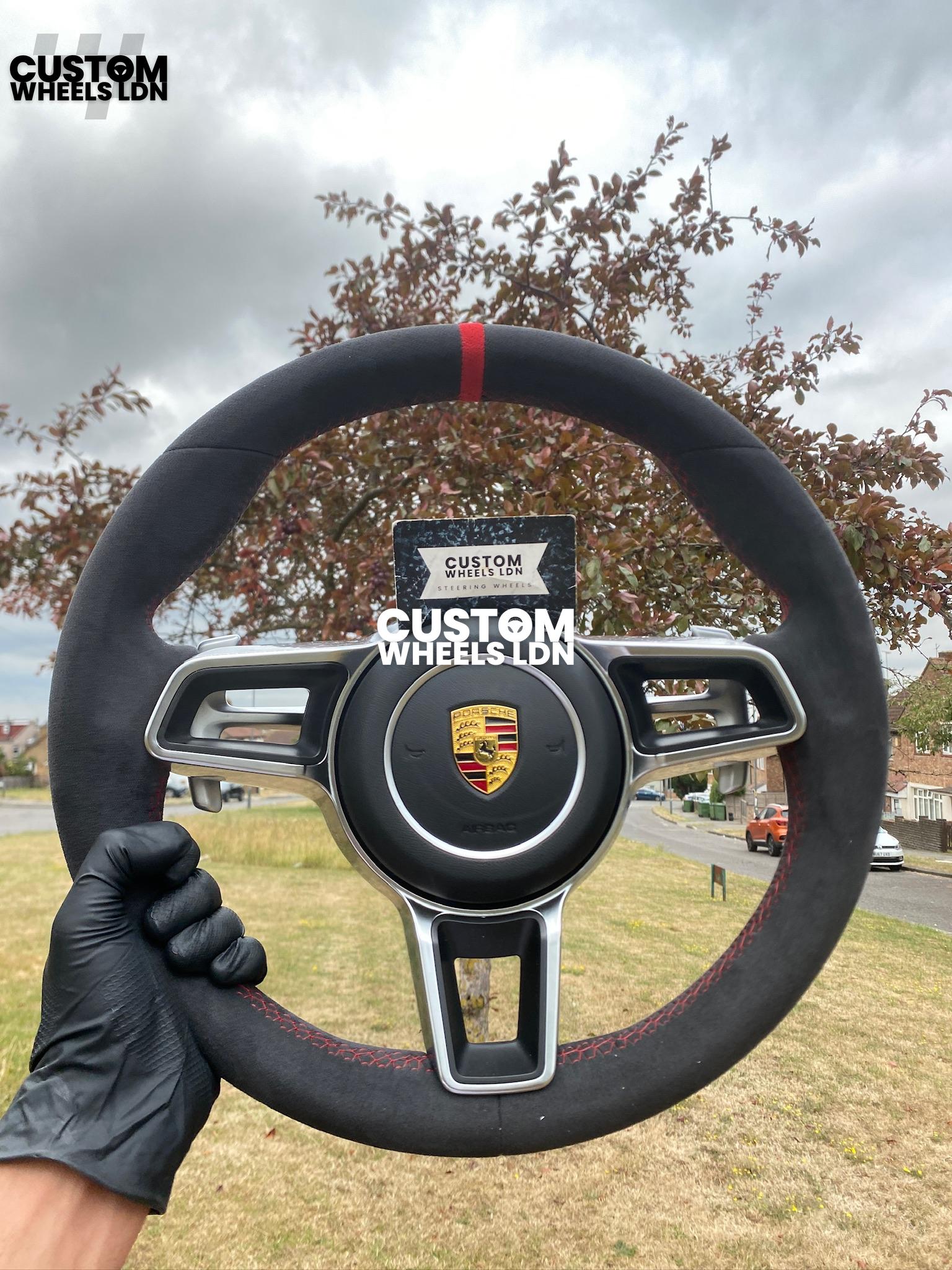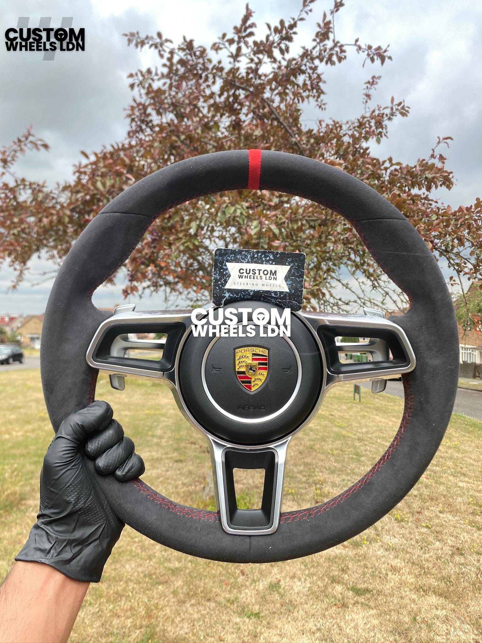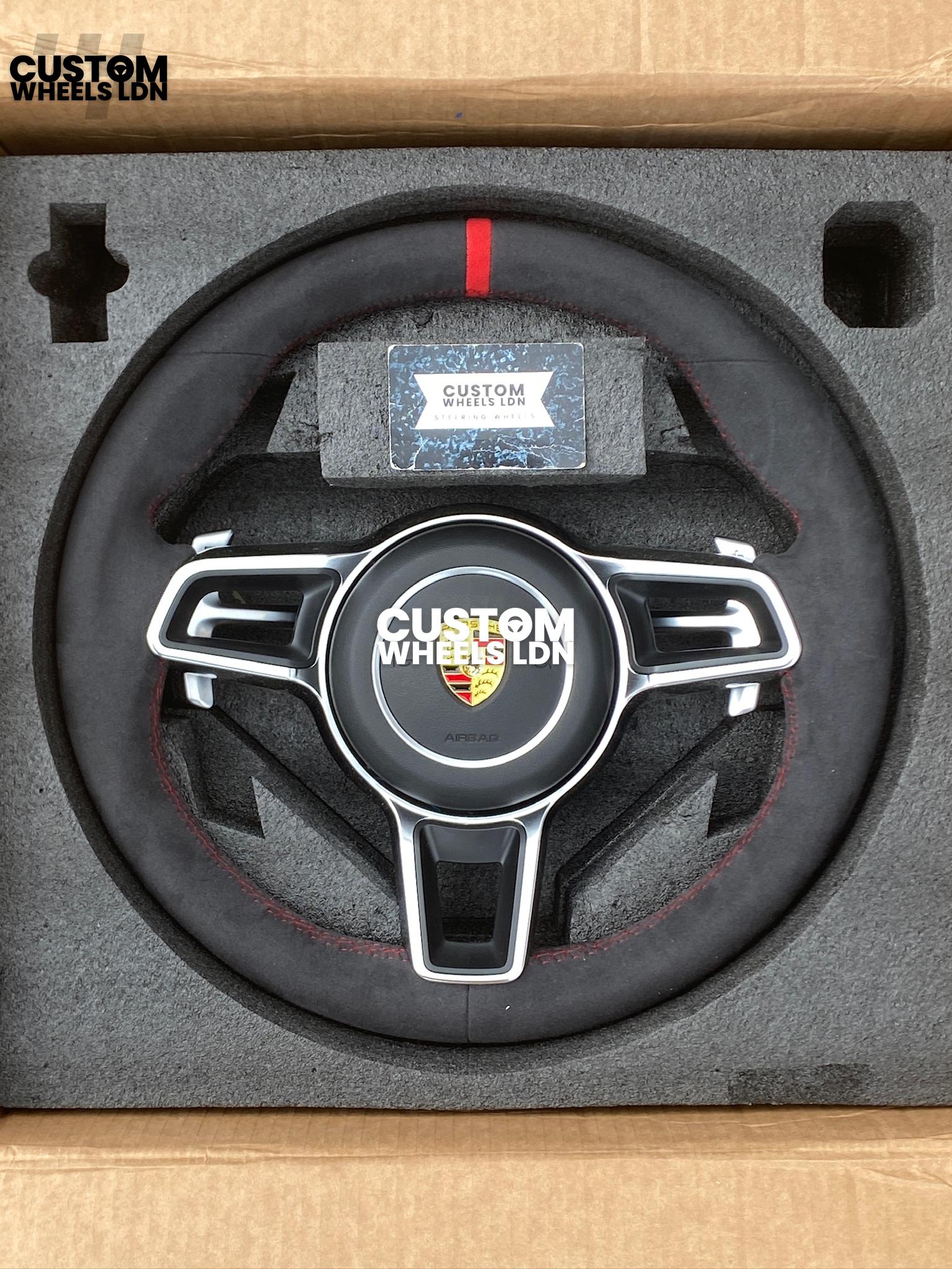 Porsche Custom Steering Wheel GT3RS Style – Alcantara, Red Stitching & Red 12 O’Clock Stripe | Fits 997, 991.1, Cayman, Boxster, Macan, Cayenne + more | Plug & Play | With Airbag | Upgrade for Older Models Available