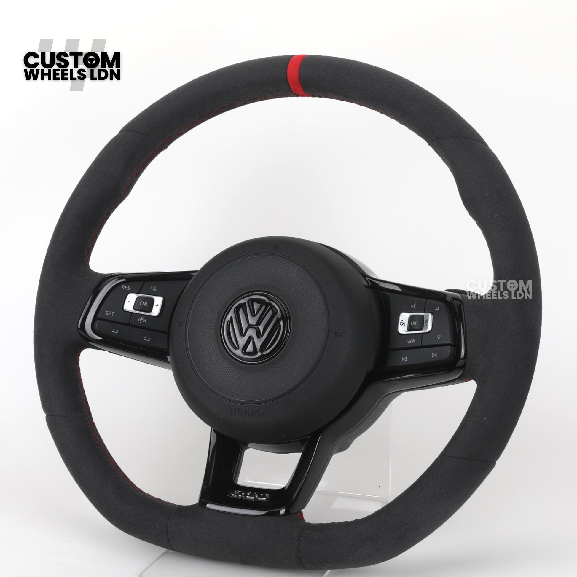 VW MK7 Custom Steering Wheel | Alcantara Wrap, Red Centre Stripe, Full Plug & Play Complete Wheel | Fits Golf MK7, GTI, R + more