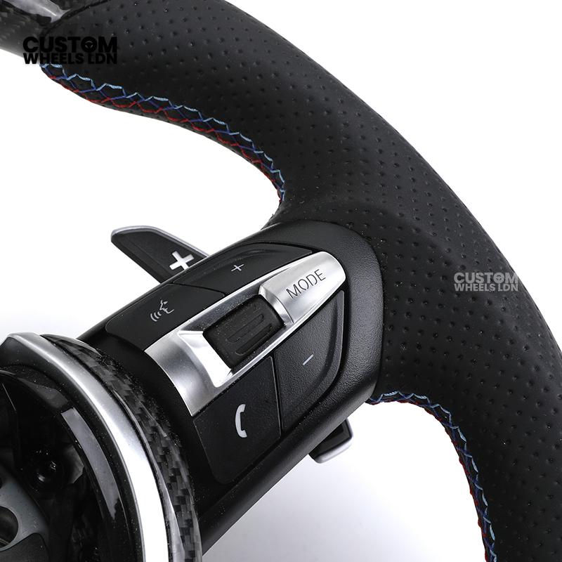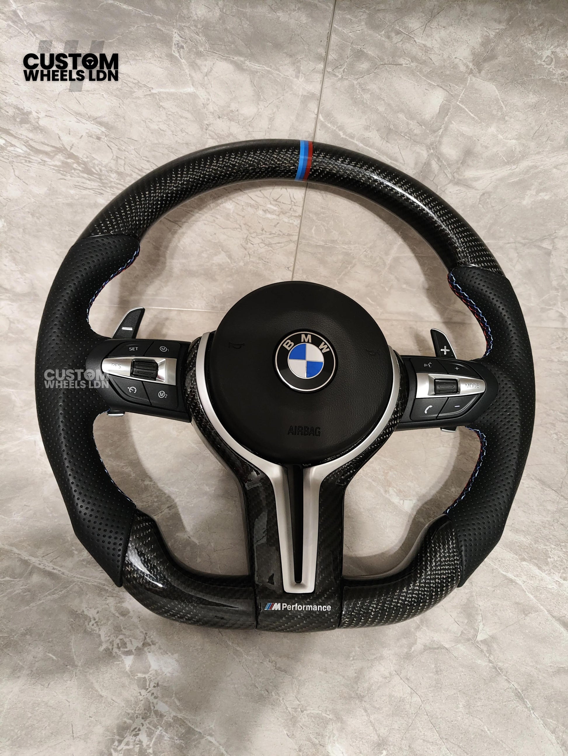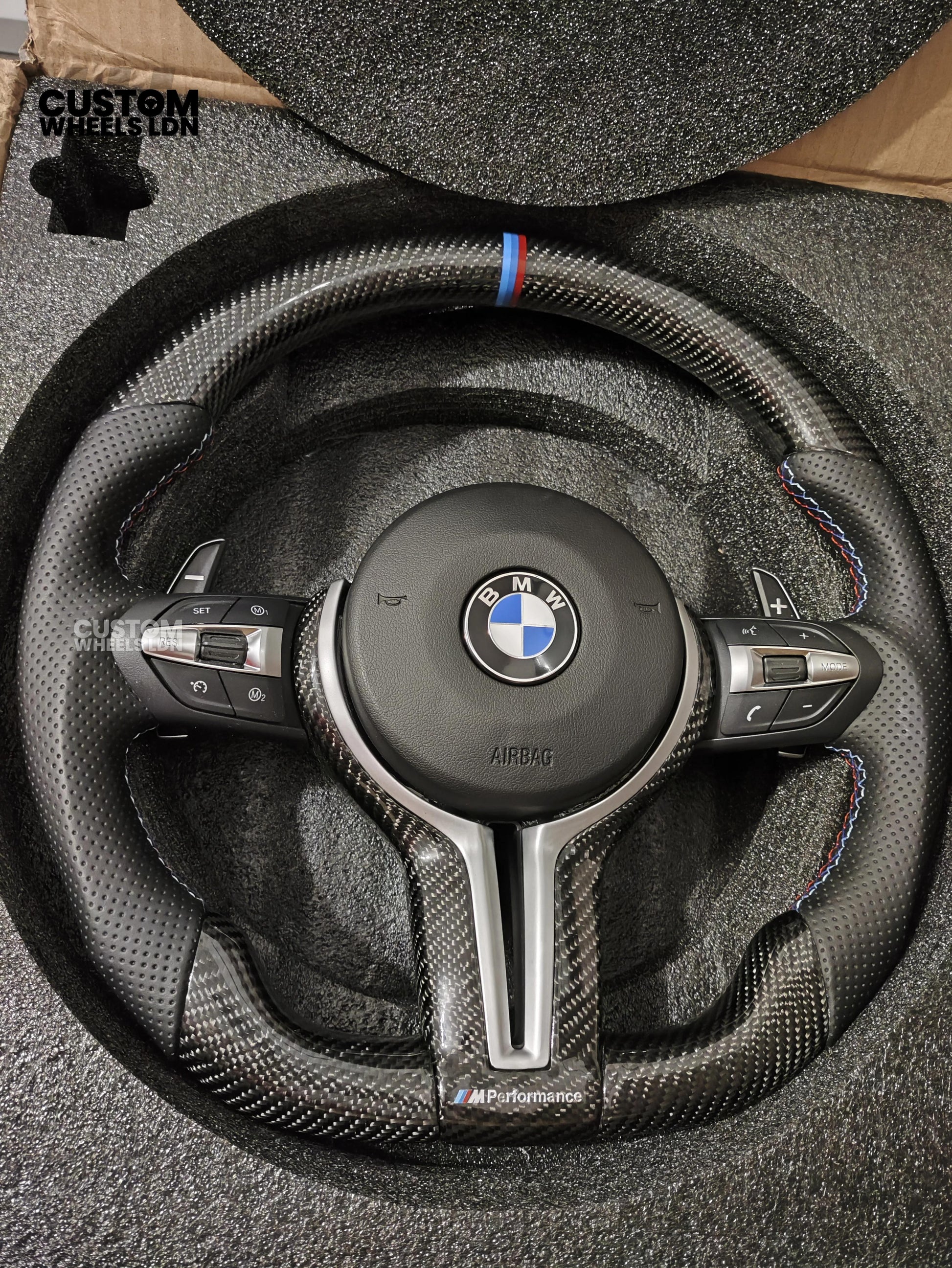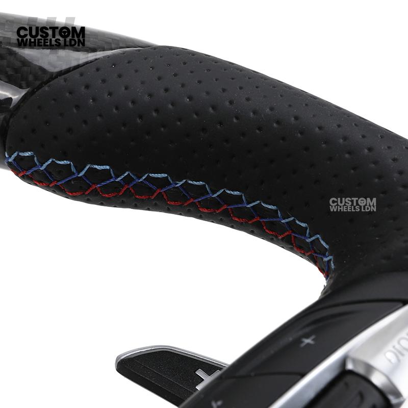 BMW Custom Carbon Fibre Steering Wheel – M-Stripe Top Marker | Perforated Leather Grip | Plug & Play | Fits older models