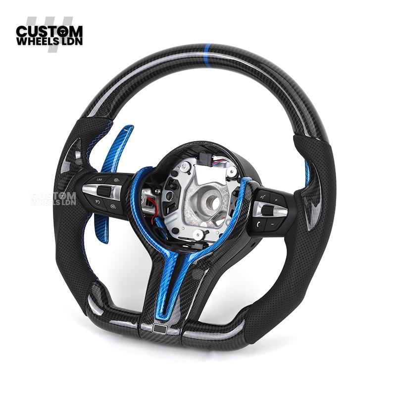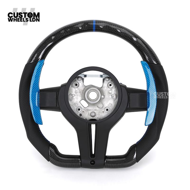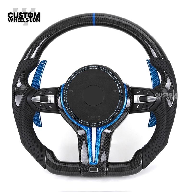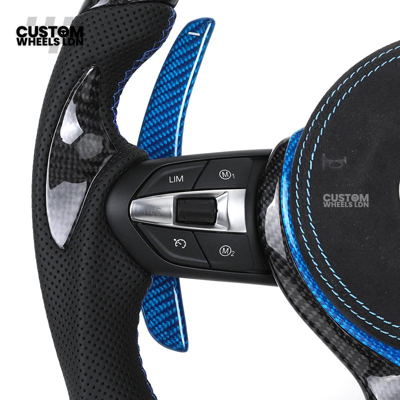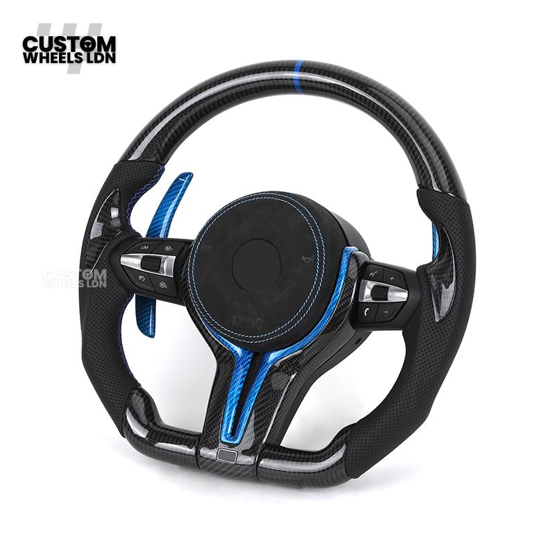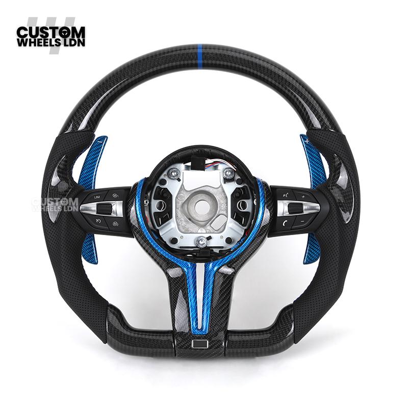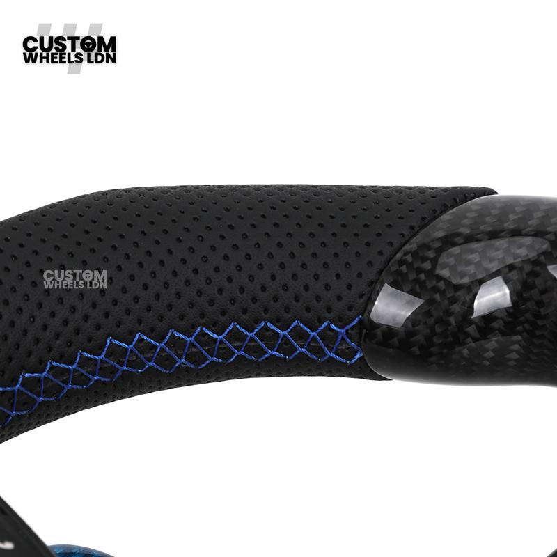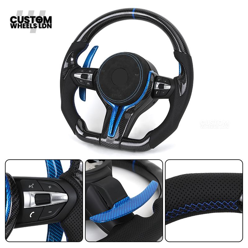 BMW Custom Carbon Fibre Steering Wheel – Blue Trim & Paddles | M Performance | Perforated Leather | Plug & Play | Fits F20, F22, F30, F32, F36, M2, M3, M4, X1, X2 + more