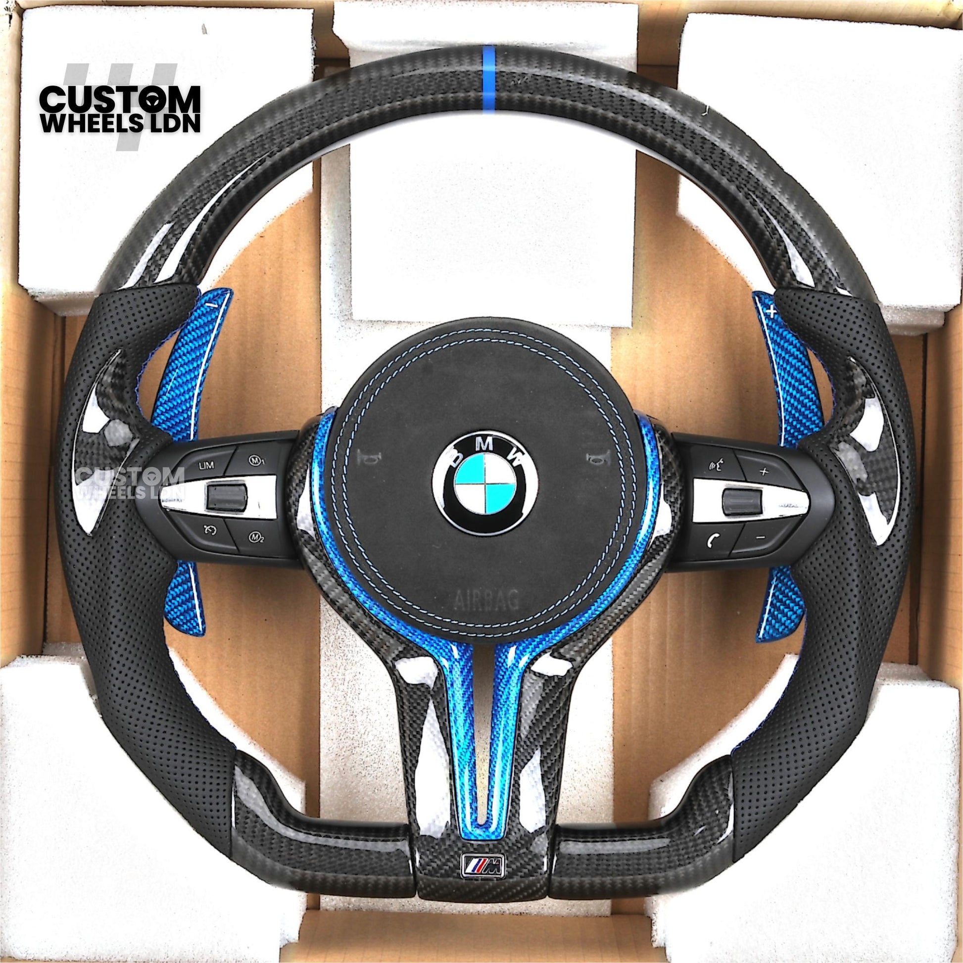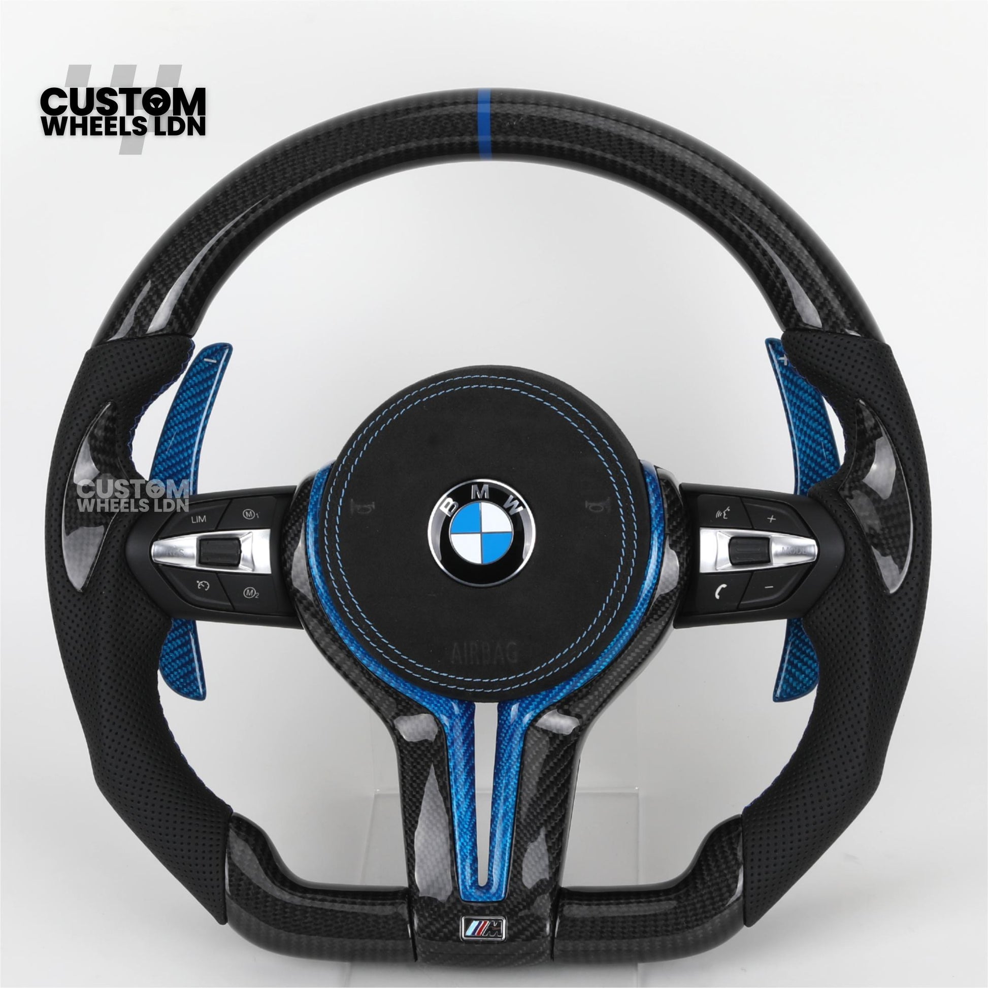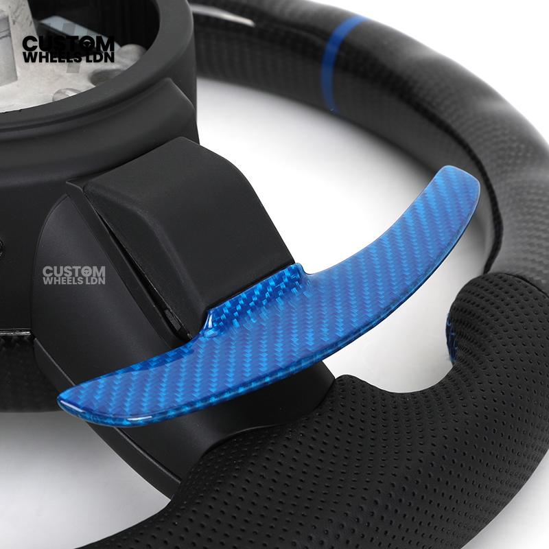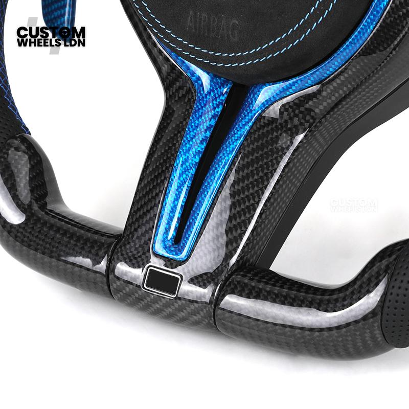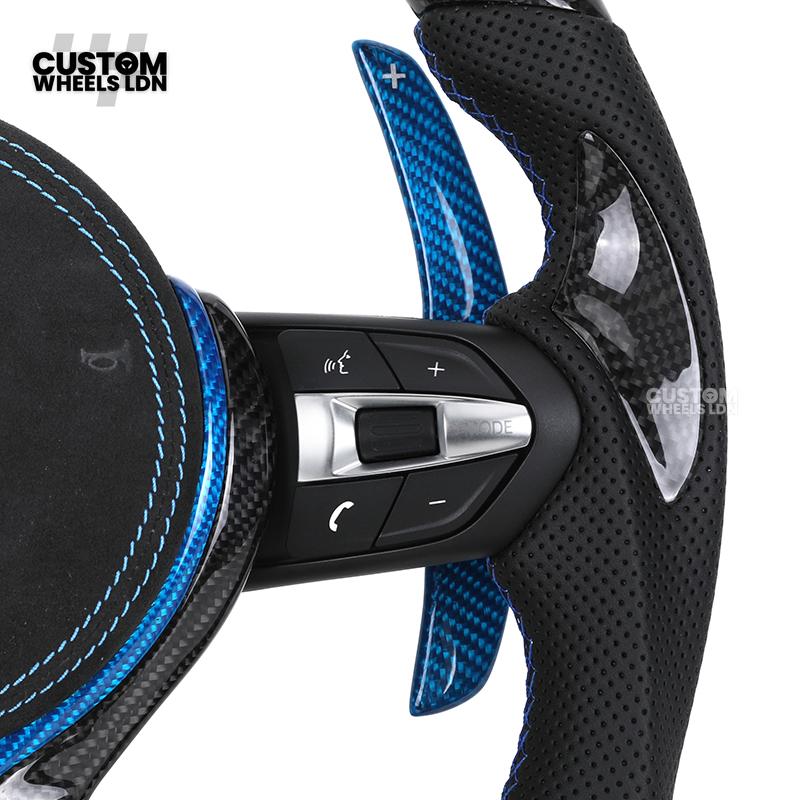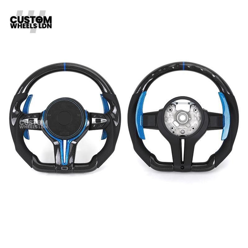 BMW Custom Carbon Fibre Steering Wheel – Blue Trim & Paddles | M Performance | Perforated Leather | Plug & Play | Fits F20, F22, F30, F32, F36, M2, M3, M4, X1, X2 + more
