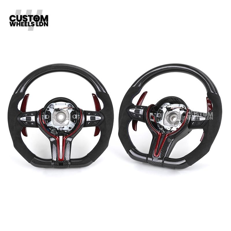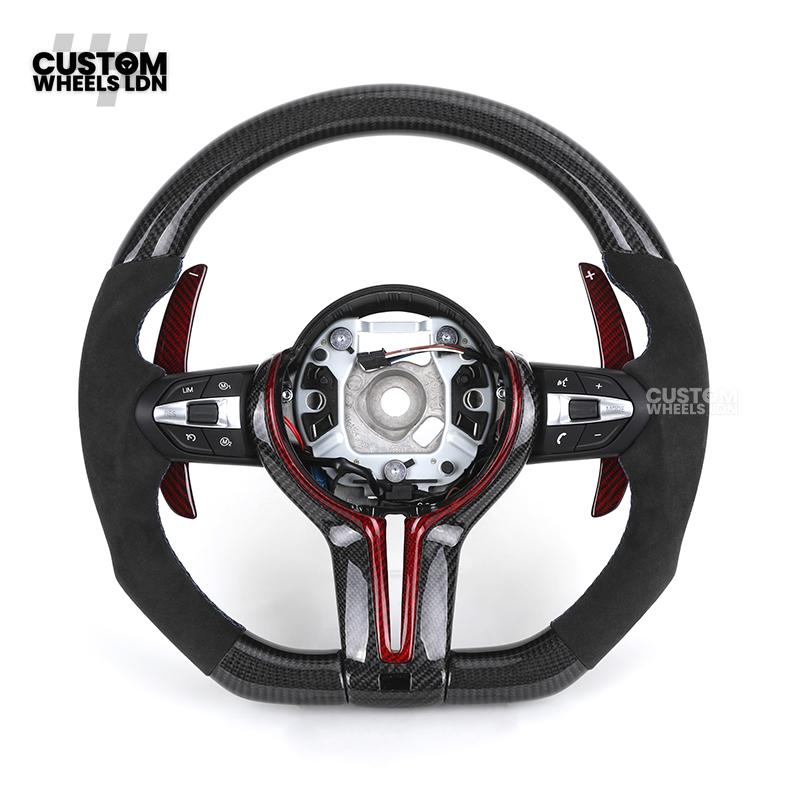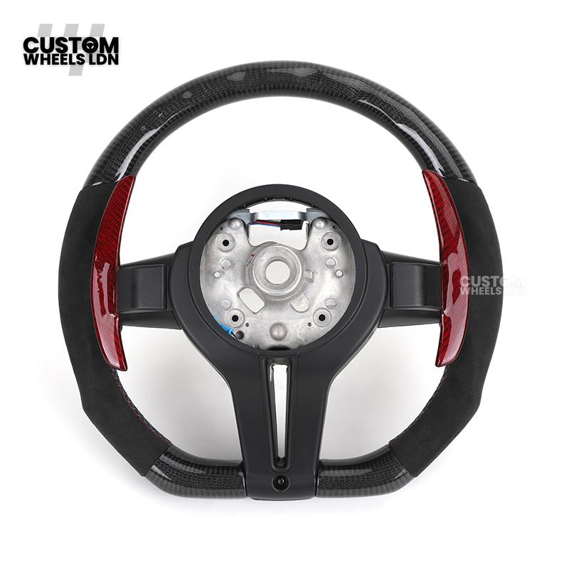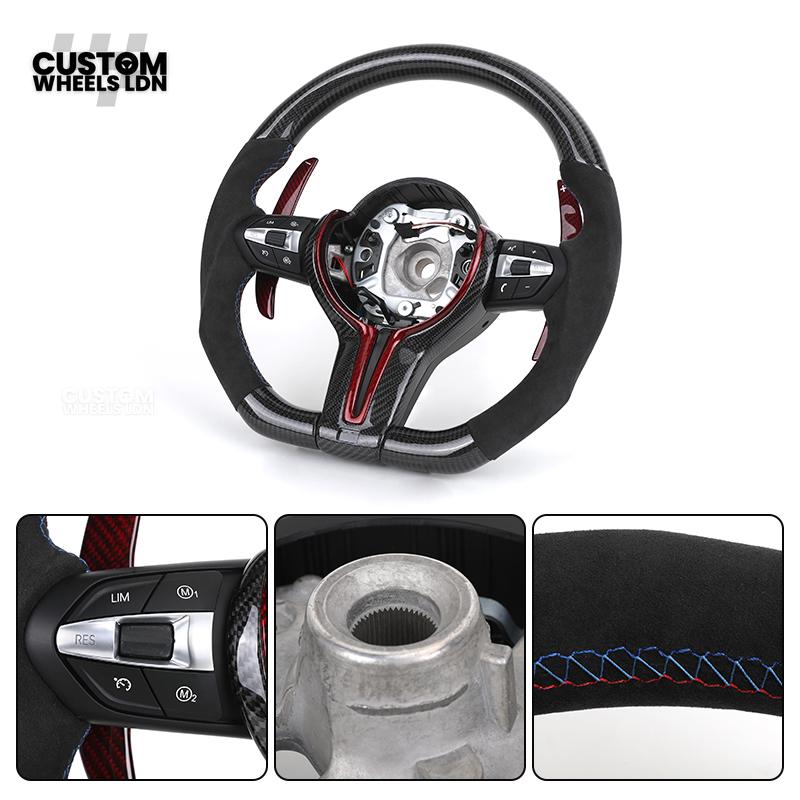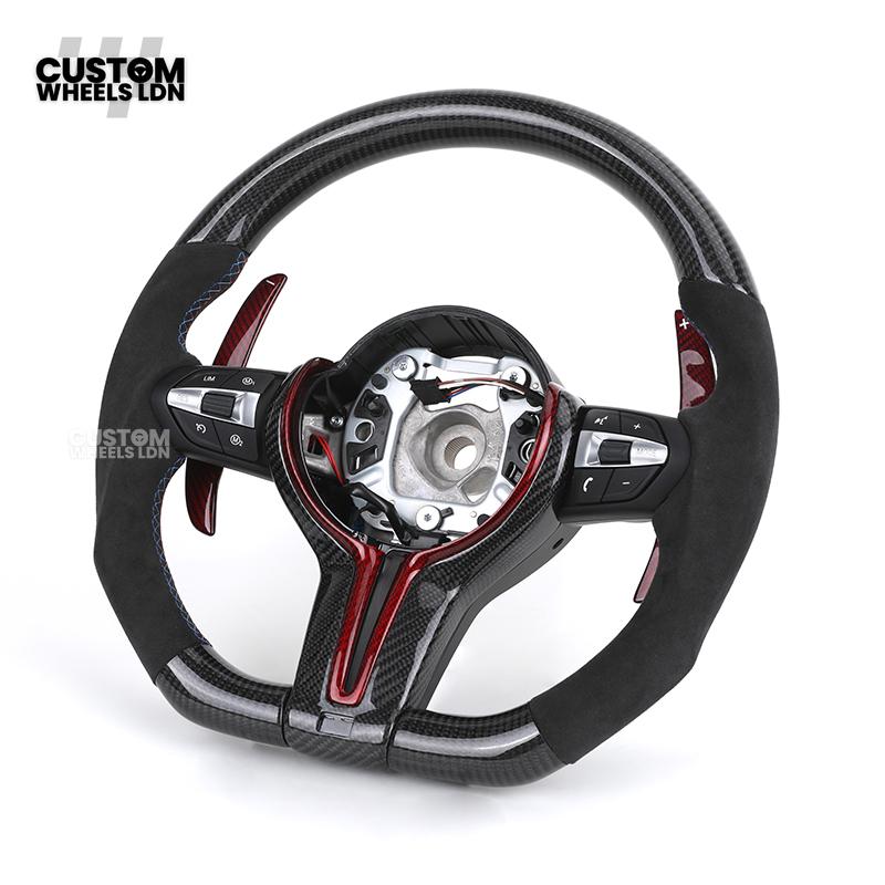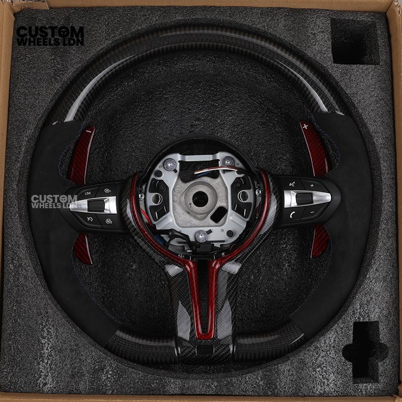 BMW Custom Carbon Fibre Steering Wheel – Red Paddle Set | Alcantara Sides | Track Style | Plug & Play | Fits F20, F22, F30, F32, F36, M2, M3, M4 + more