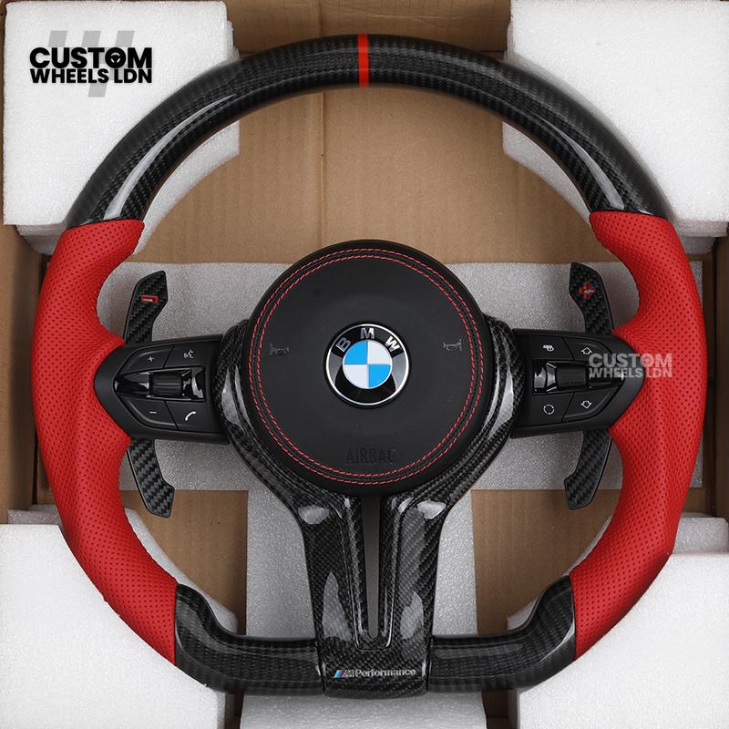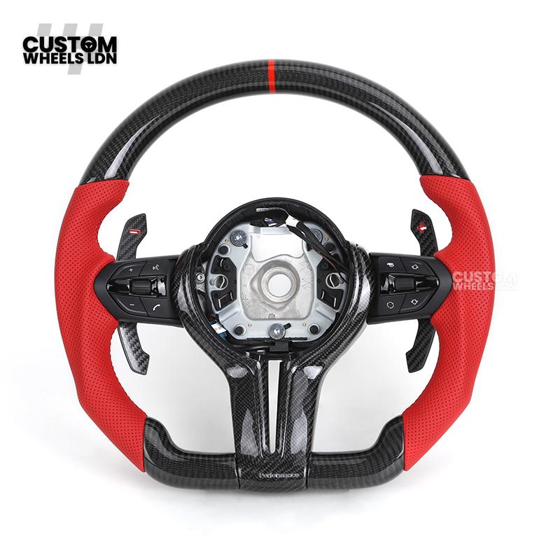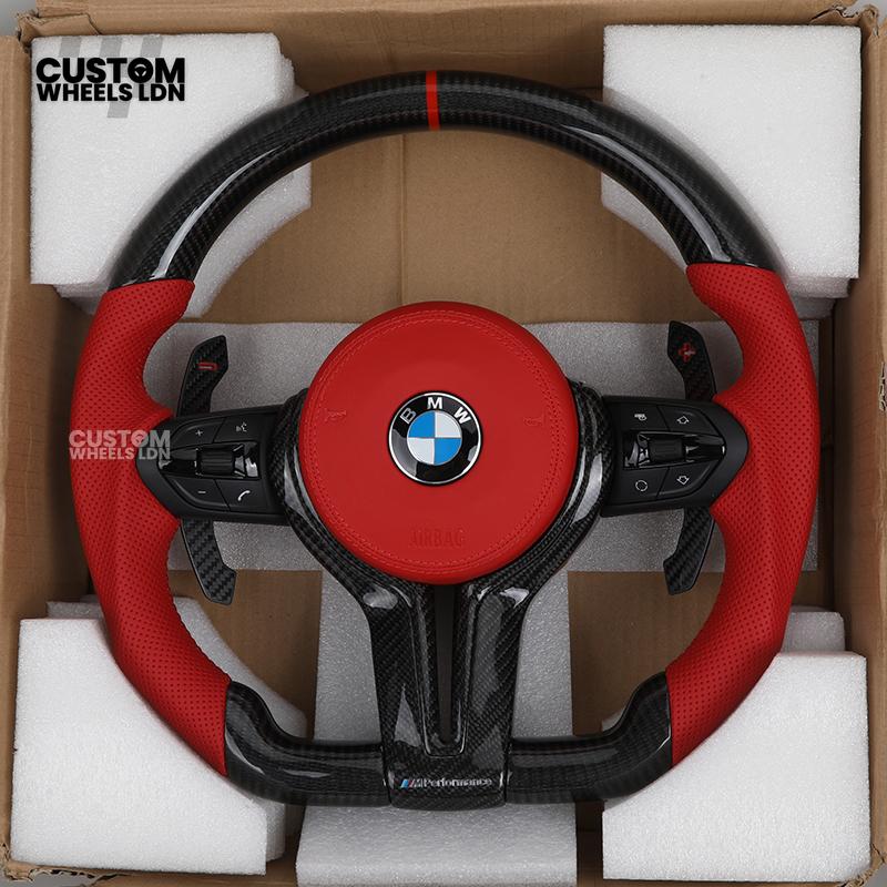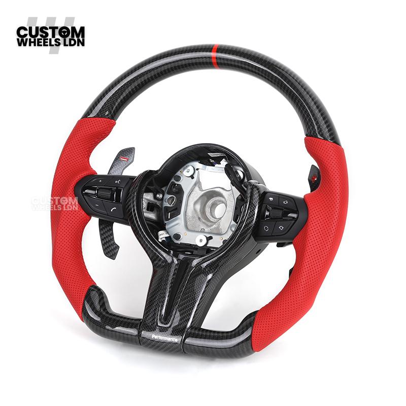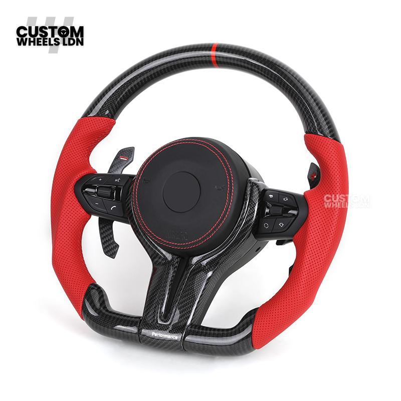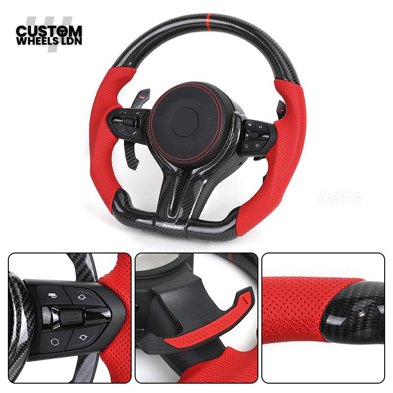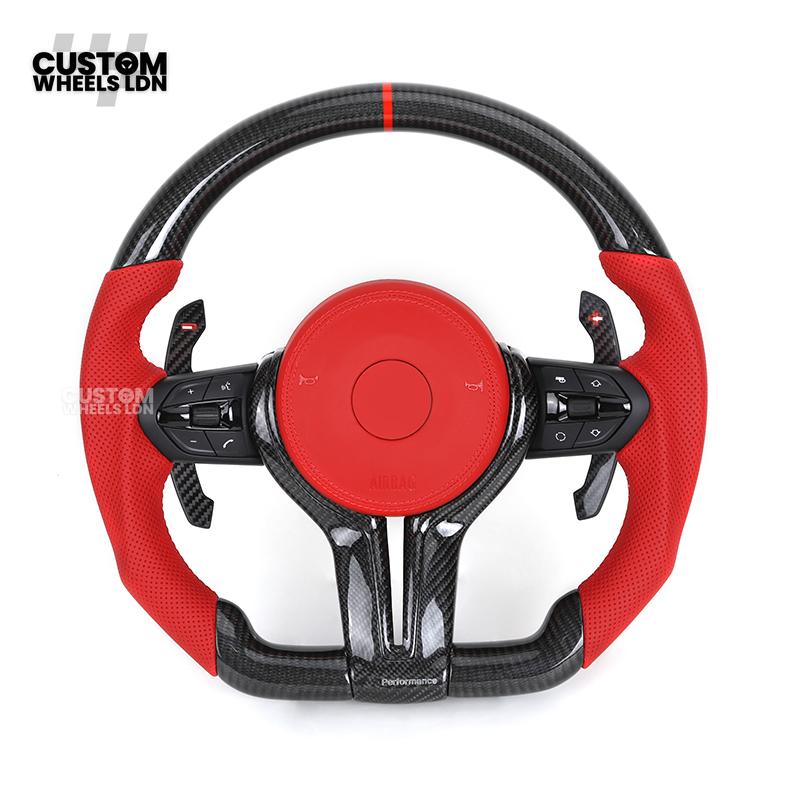 BMW Custom F-Series Carbon Fibre & Red Steering Wheel – Perforated Leather | Fits F20 F22 F30 F32 F36 M2 M3 M4 + more