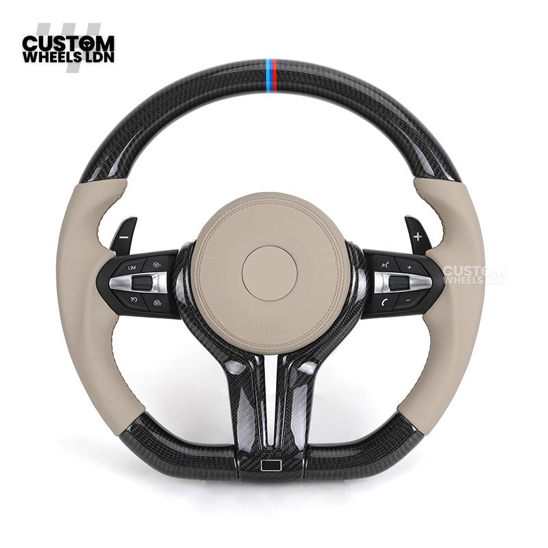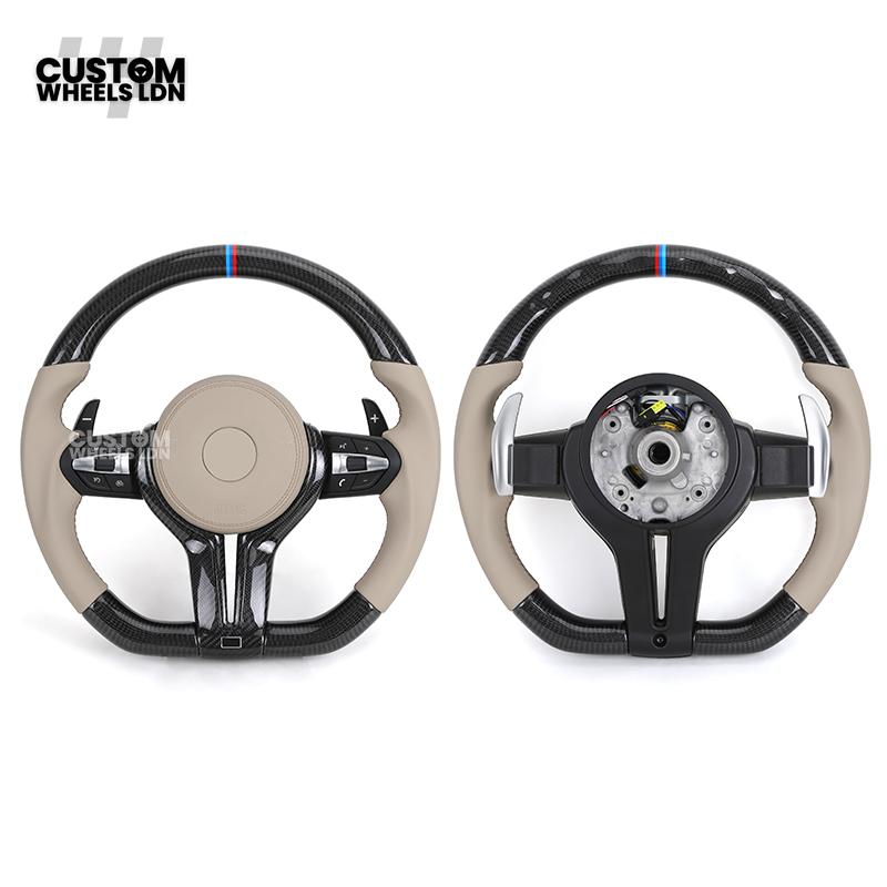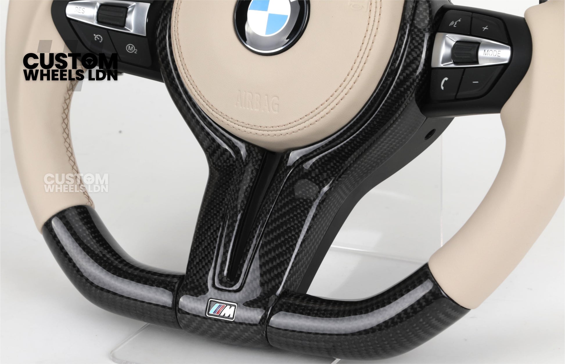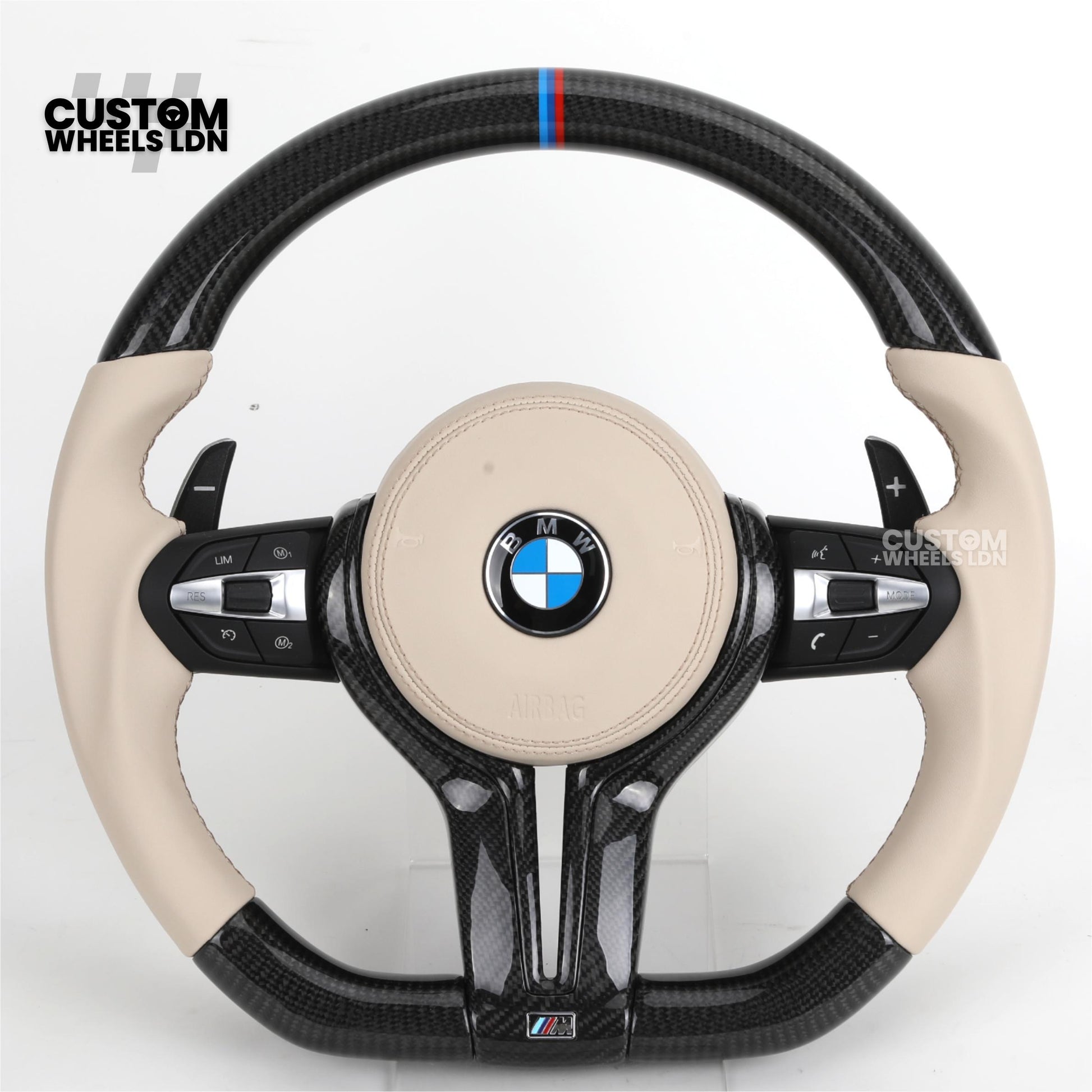 BMW Custom F-Series Carbon & Cream Leather Steering Wheel – M Stripe | Fits F20 F22 F30 F32 F36 M2 M3 M4 + more