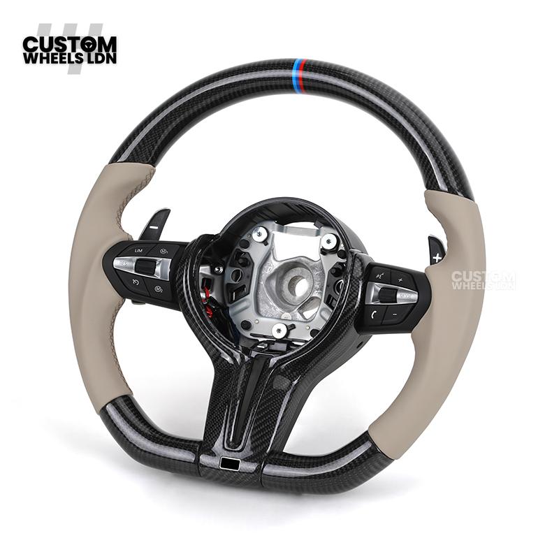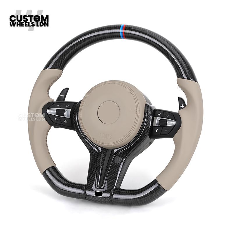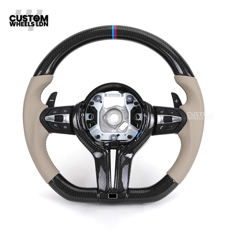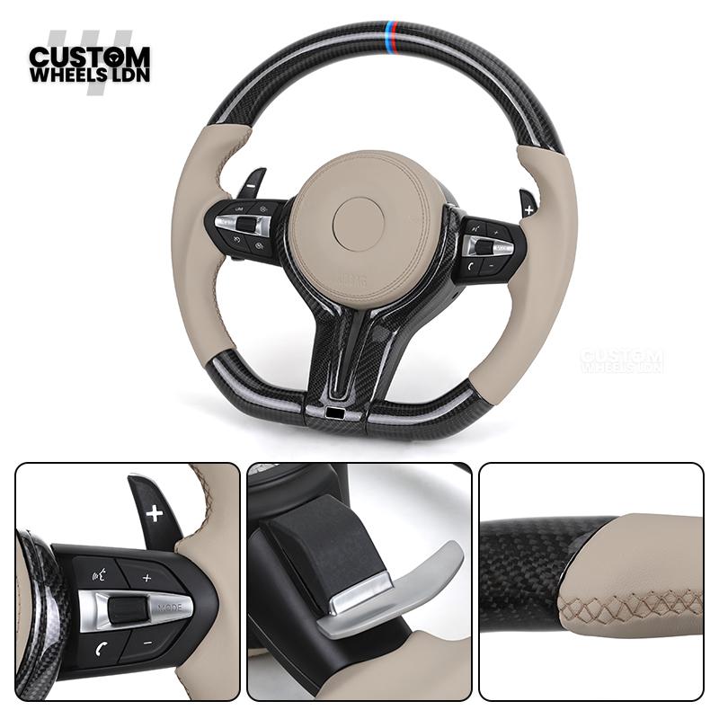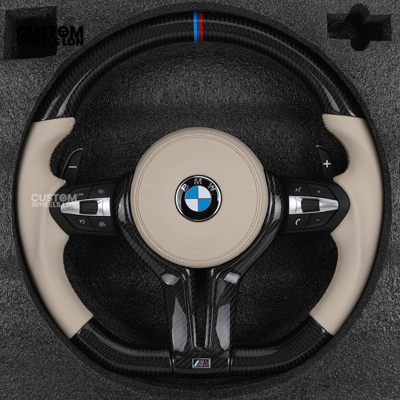 BMW Custom F-Series Carbon & Cream Leather Steering Wheel – M Stripe | Fits F20 F22 F30 F32 F36 M2 M3 M4 + more