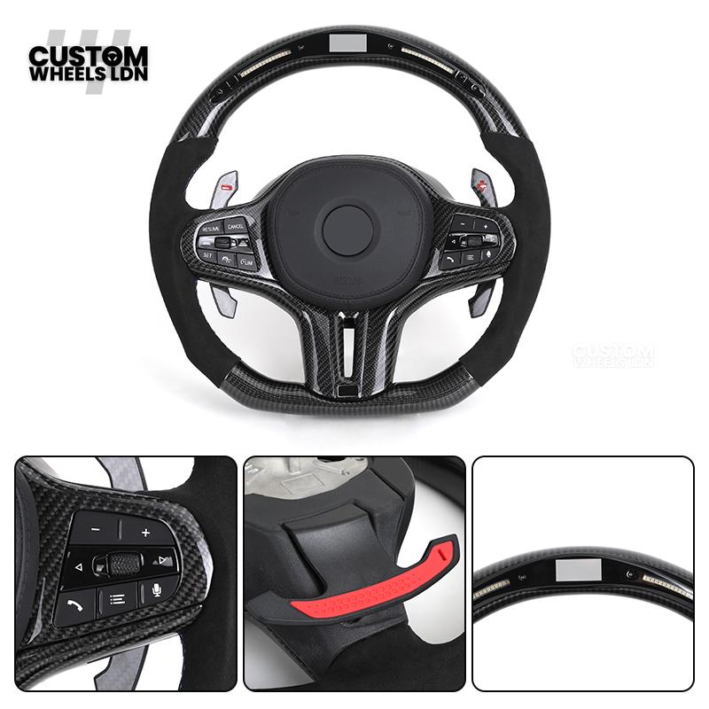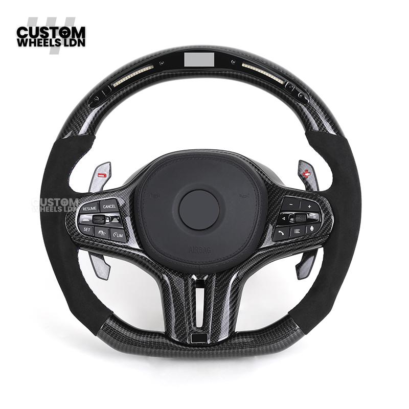 BMW Custom G-Series Steering Wheel – Carbon Fibre, Flat Bottom, LED Display, Carbon Paddles – Fits G20 G21 G22 G30 G15 G05 G07 + more